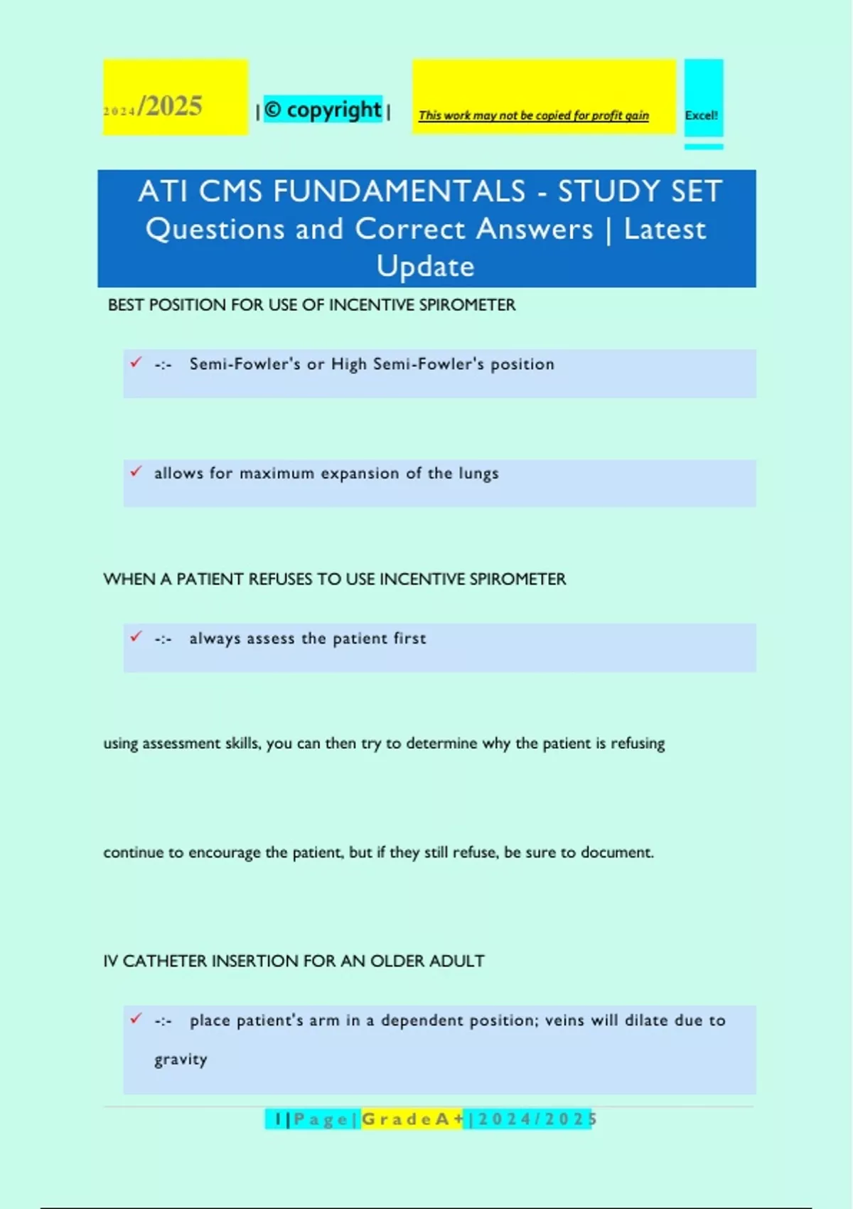 ATI CMS FUNDAMENTALS - STUDY SET Questions and Correct Answers | Latest Update