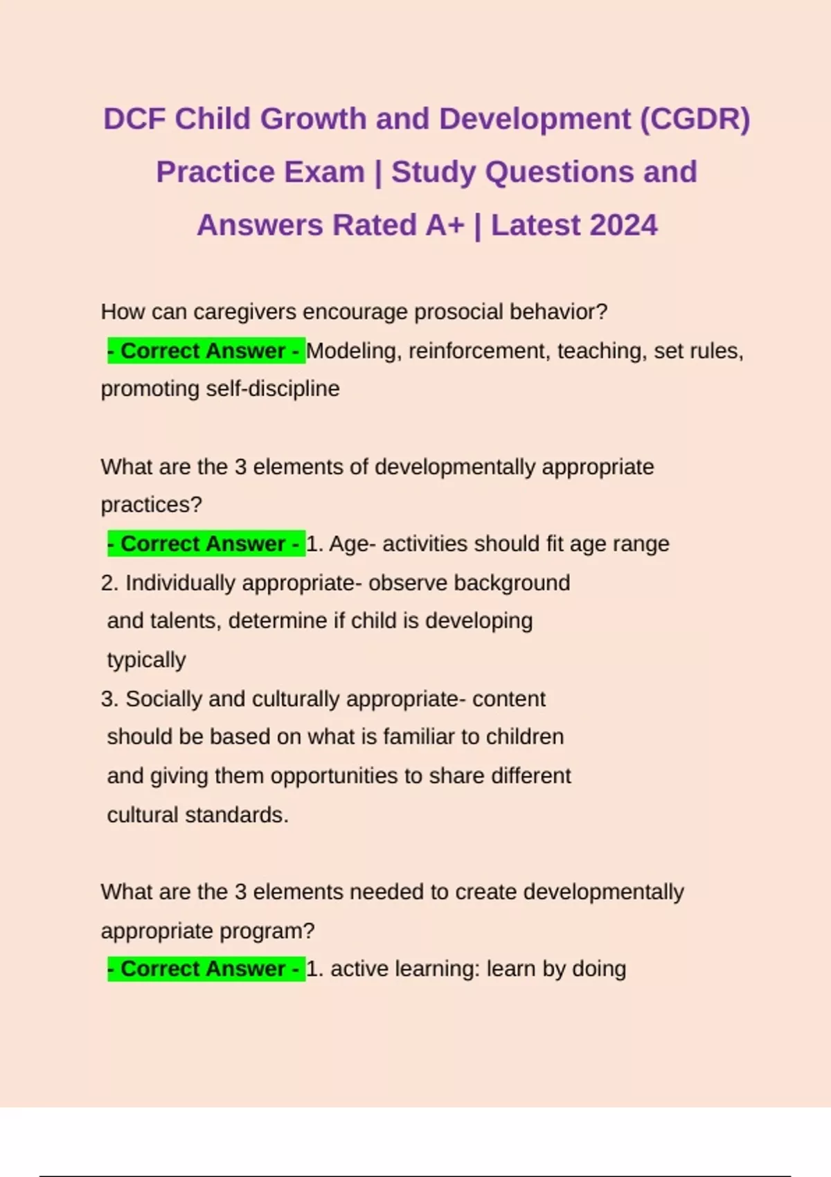 Bundle for DCF Child Growth and Development (CGDR) Practice Exam & Complete Study Guide| Study Questions and Answers Rated A+ | Latest 2024