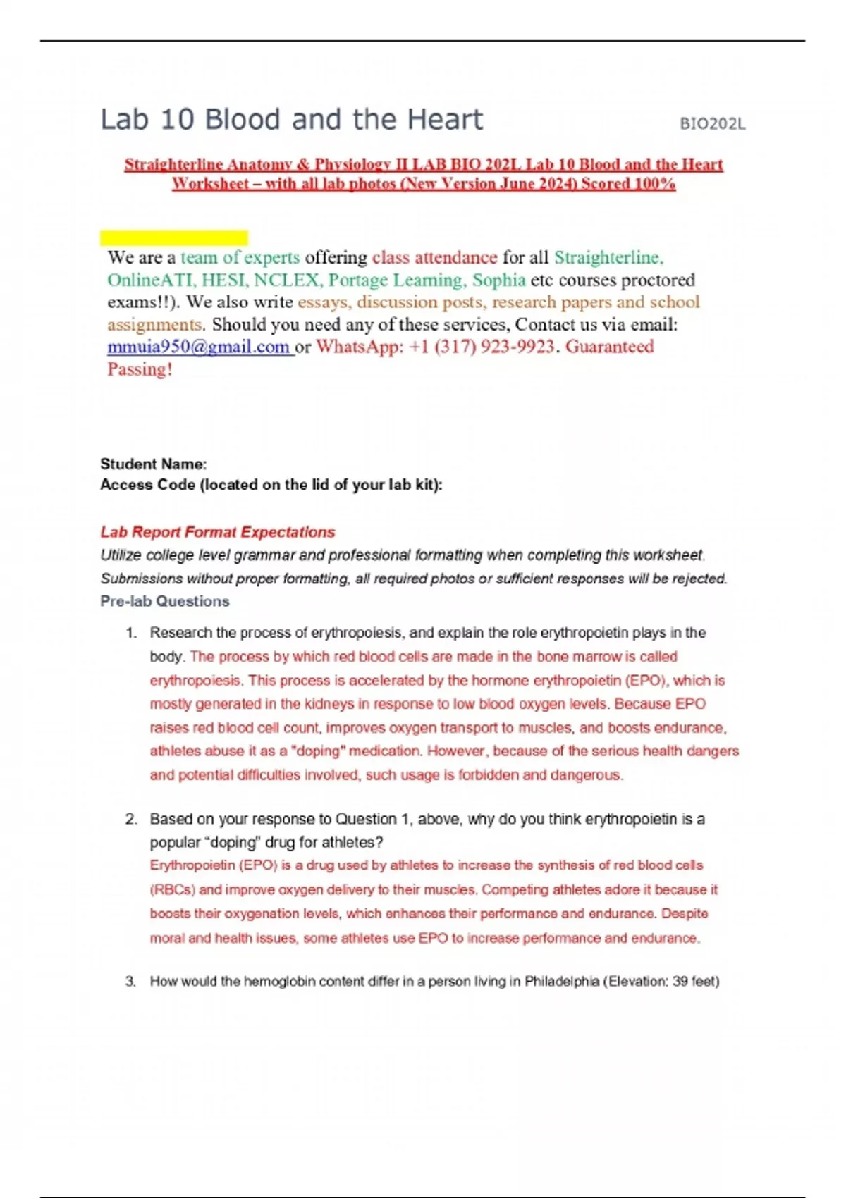 BUNDLE FOR Straighterline Anatomy & Physiology II LAB BIO 202L Lab 10,11,12,13,14,15,16,17 & 18 Worksheets – with all lab photos (New Version June 2024) Scored 100% Lab (New Version June 2024) With Complete Solutions