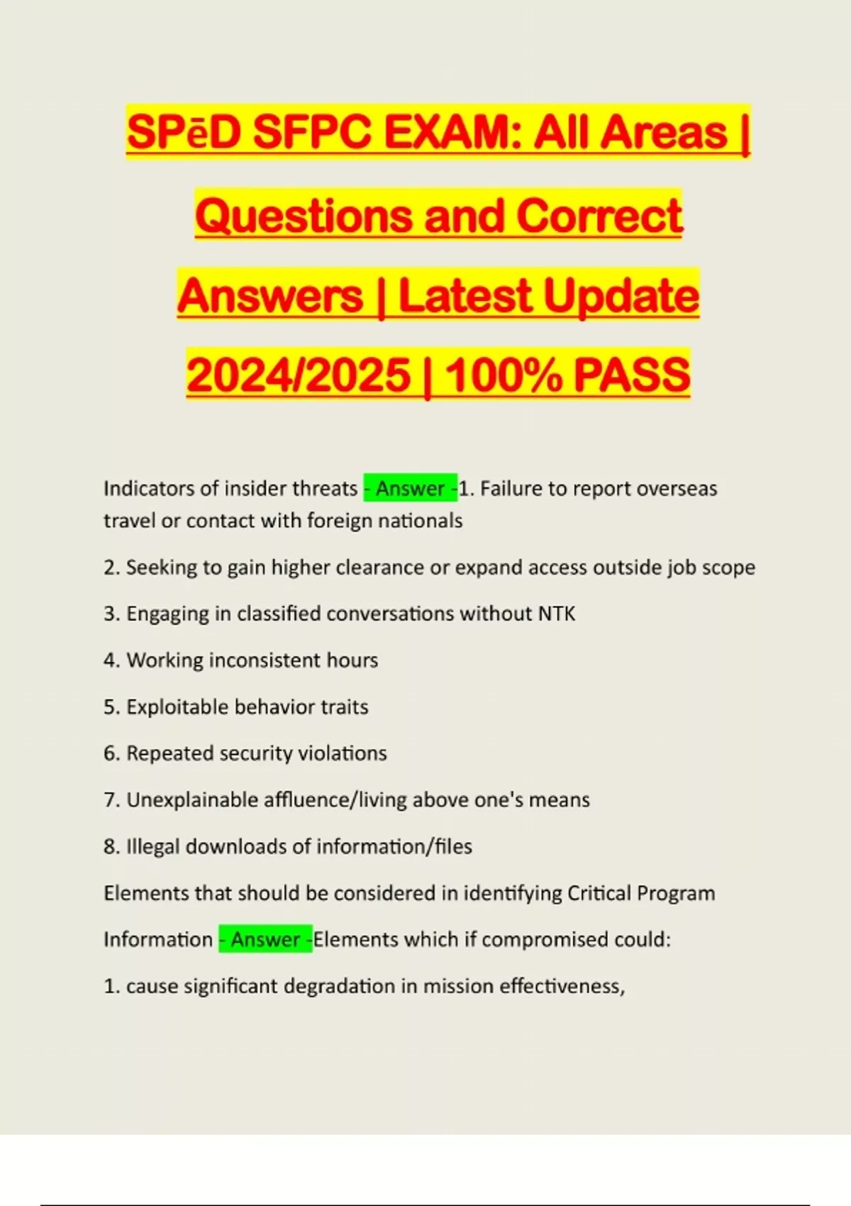 BUNDLED EXAMS FOR SPeD SFPC::::: QUESTIONS AND CORRECT ANSWERS | LATEST UPDATE 2024/2025