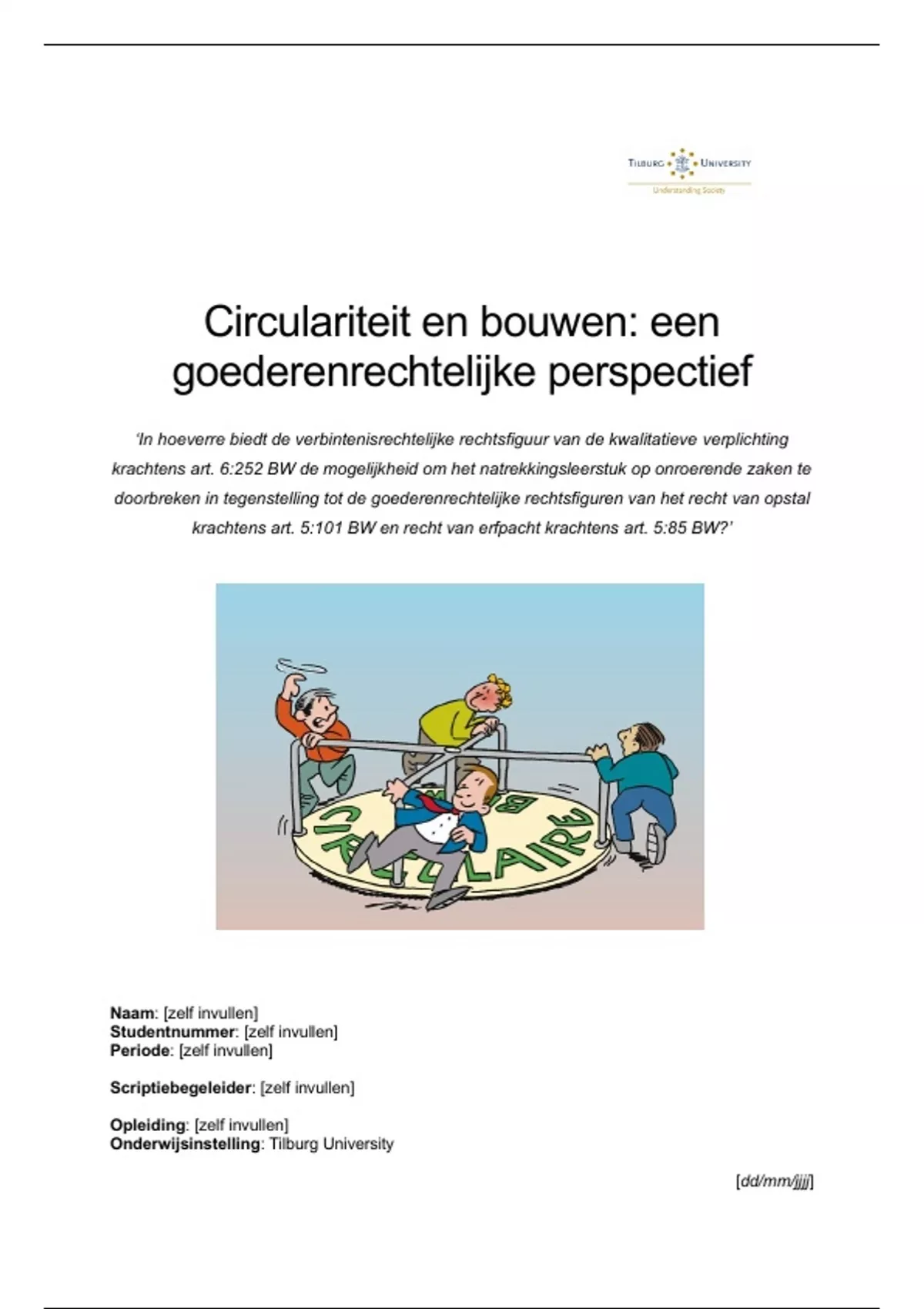 In dit document tref je alles aan wat je nodig hebt voor het schrijven van je bachelor scriptie Rechtsgeleerdheid. Je treft als eerst het onderzoeksvoorstel aan en vervolgens de uiteindelijke scriptie. Succes met het schrijven van je onderzoeksvoorstel en scriptie!