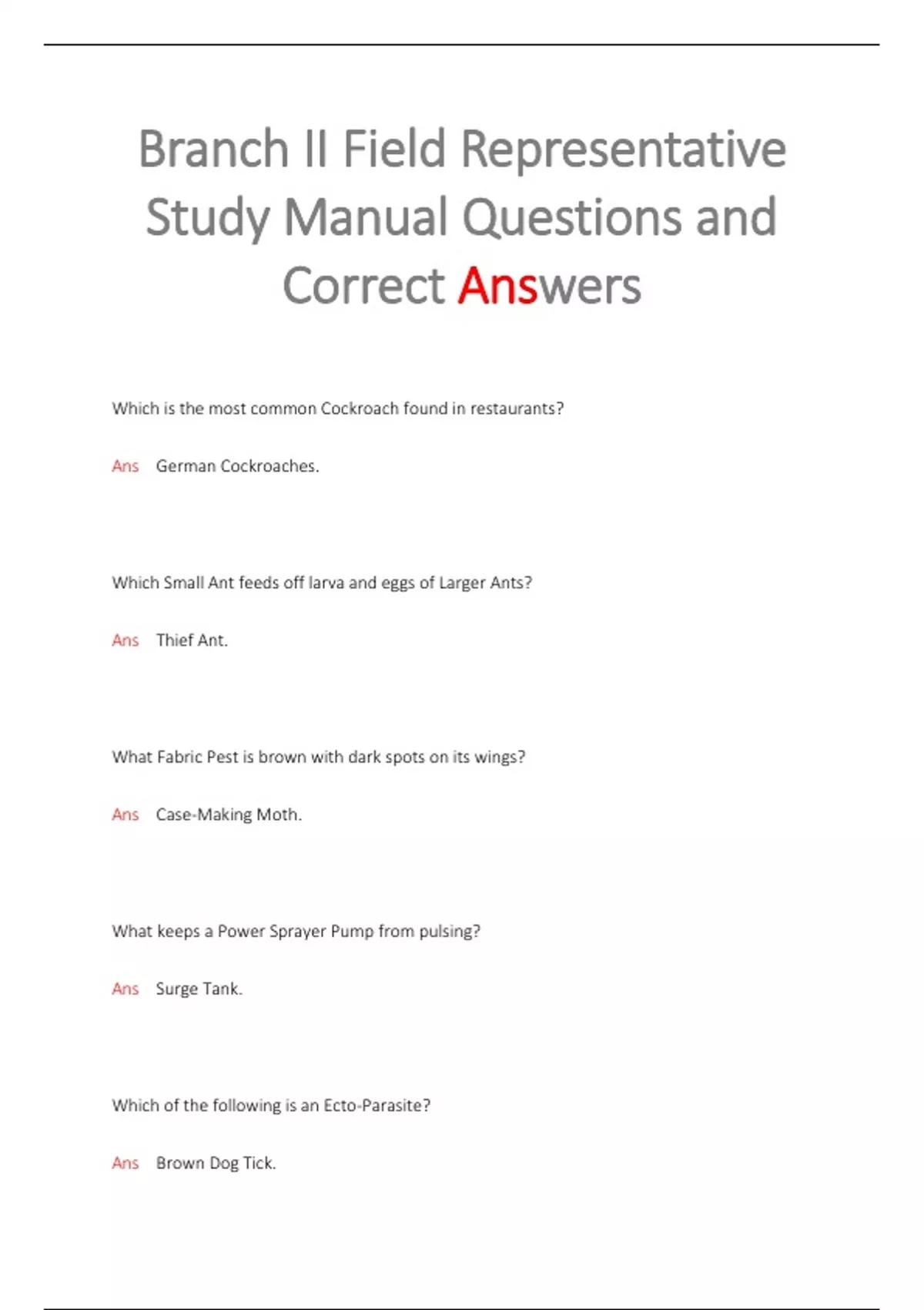 Branch II Field Representative Study Manual Questions and Correct Answers