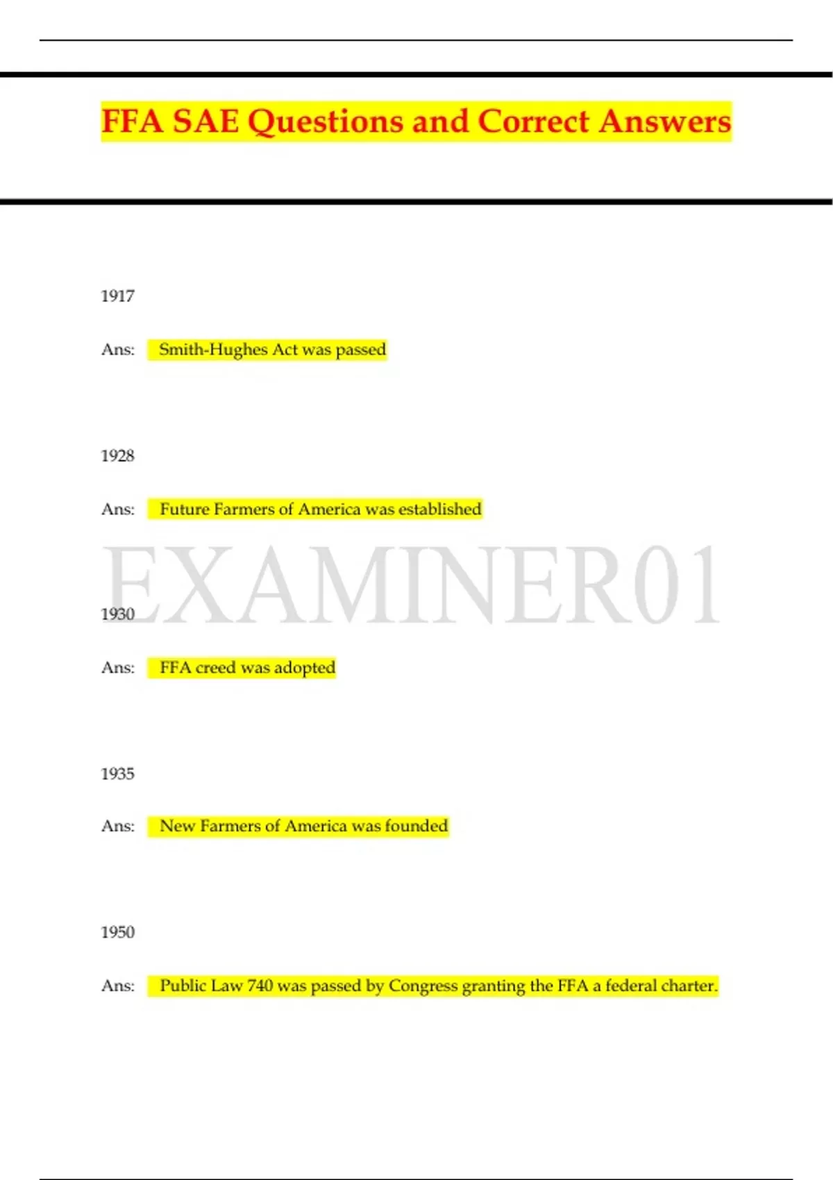 FFA SAE Questions and Correct Answers