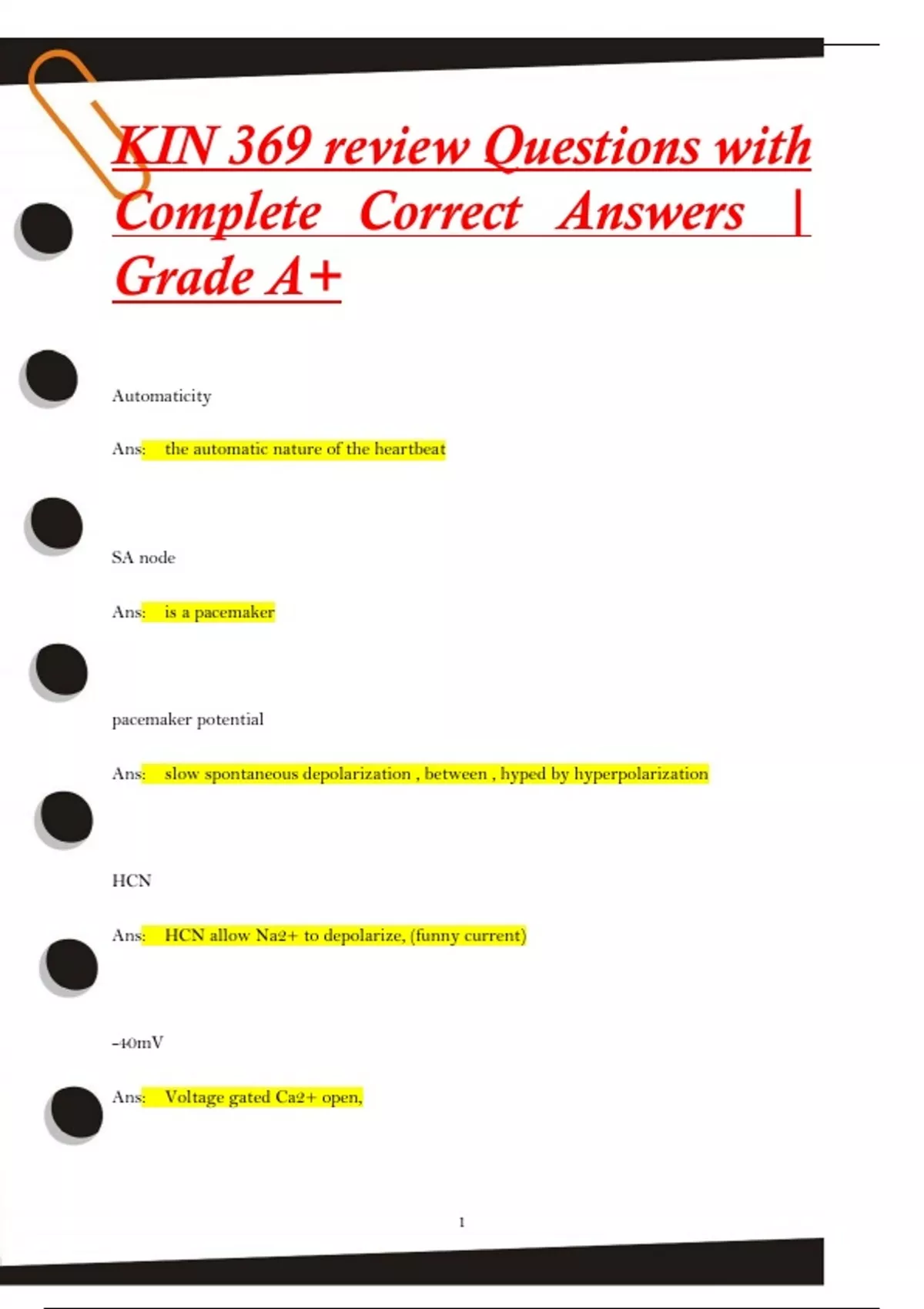 KIN 369 review Questions with Complete Correct Answers | Grade A+