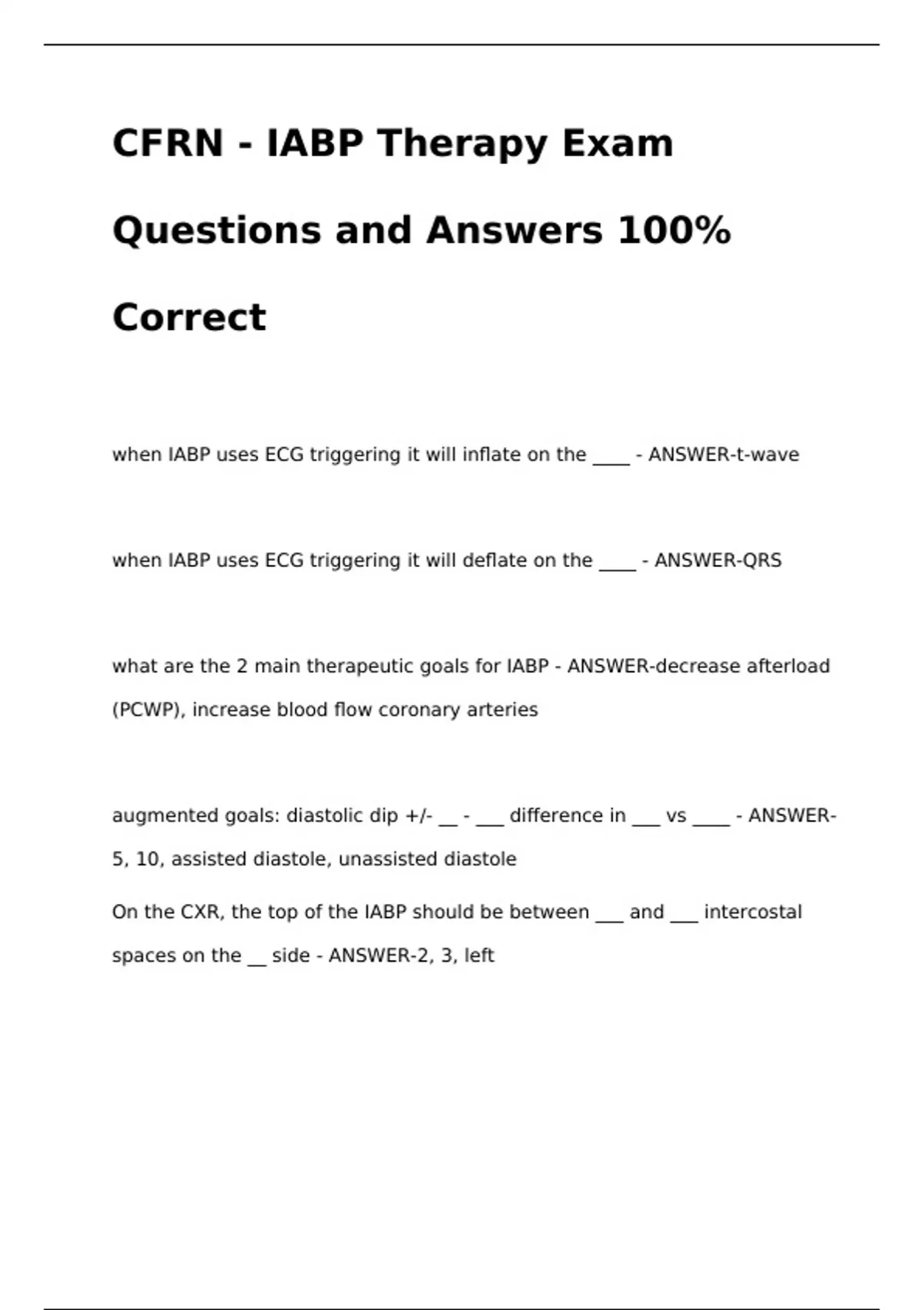 IABP (Intra-Aortic Balloon Pump) THERAPY EXAM BUNDLE (PACKAGE DEAL) -QUESTONS AND ANSWERS 100% CORRECT!!