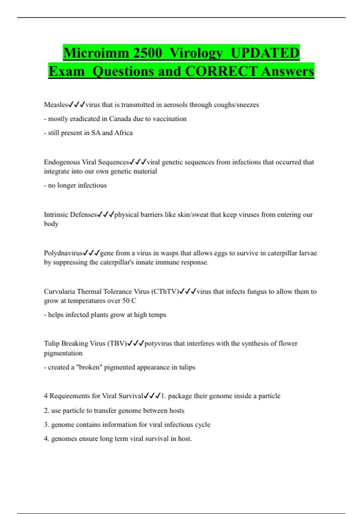 Virology Bundled Exam Questions and CORRECT Answers