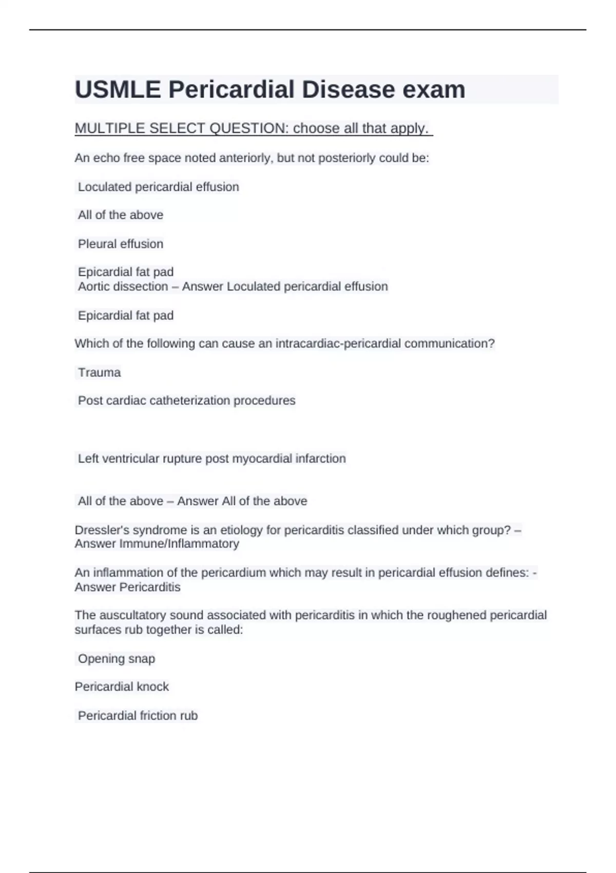 Pericardial Disease USMLE 2024/2025 exams.