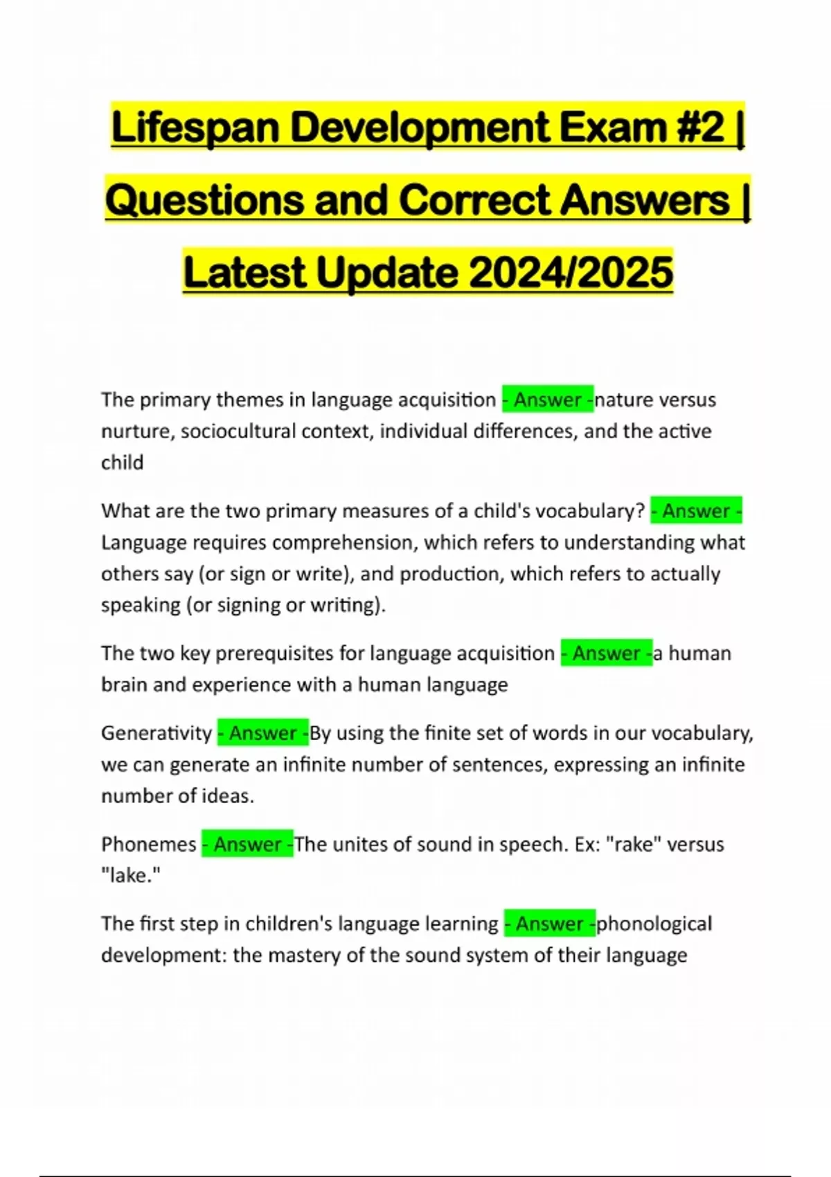 LIFESPAN DEVELOPMENT EXAMS BUNDLE:::: QUESTIONS AND CORRECT ANSWERS | LATEST UPDATE 2024/2025