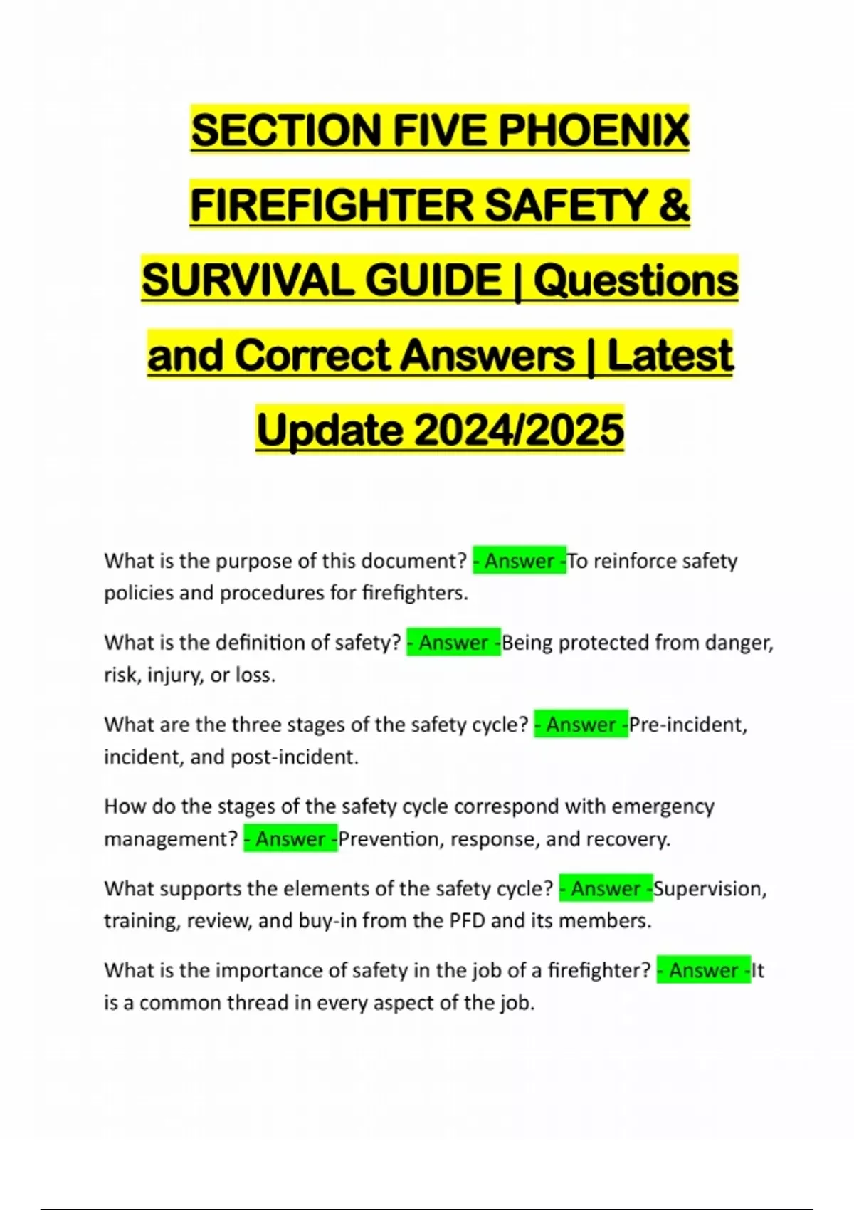 PHOENIX FIRE DEPARTMENT BUNDLED EXAMS:::: QUESTIONS AND CORRECT ANSWERS | LATEST UPDATE 2024/2025