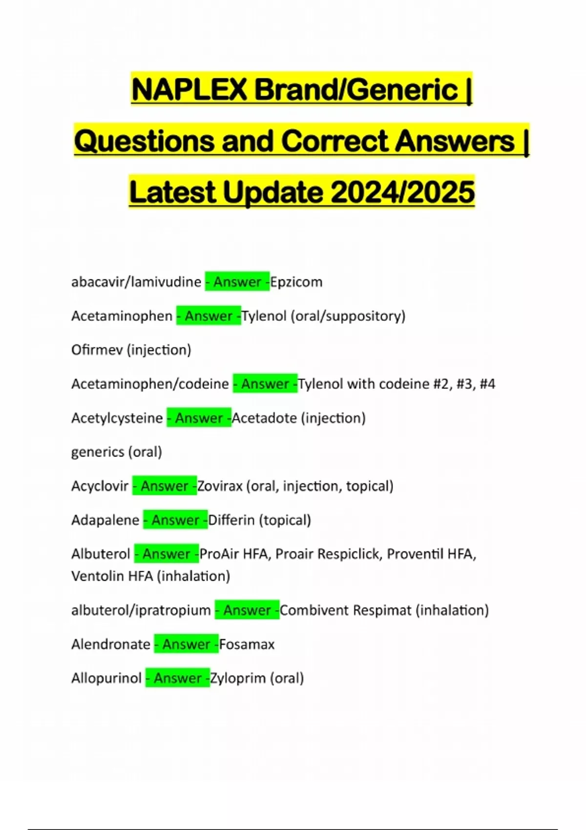 NAPLEX PACKAGE DEAL EXAMS:::: QUESTIONS AND CORRECT ANSWERS | LATEST UPDATE 2024/2025
