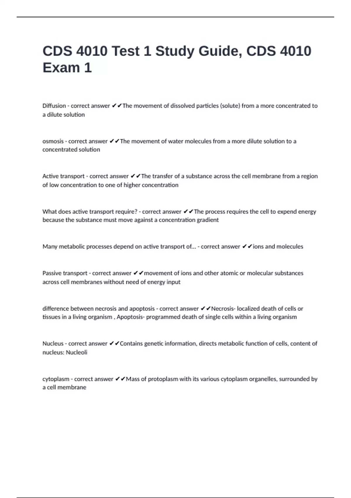 1 Exam (elaborations) CDS Practice Questions well answered to pass 2 Exam (elaborations) CD 603: Clinical Methods 3 // Exam 2 correctly answered to pass 3 Exam (elaborations) CD 2303 - Neurological Exam questions well answered 4 Exam (elaborations) CD 239 Exam 2 questions with complete solutions