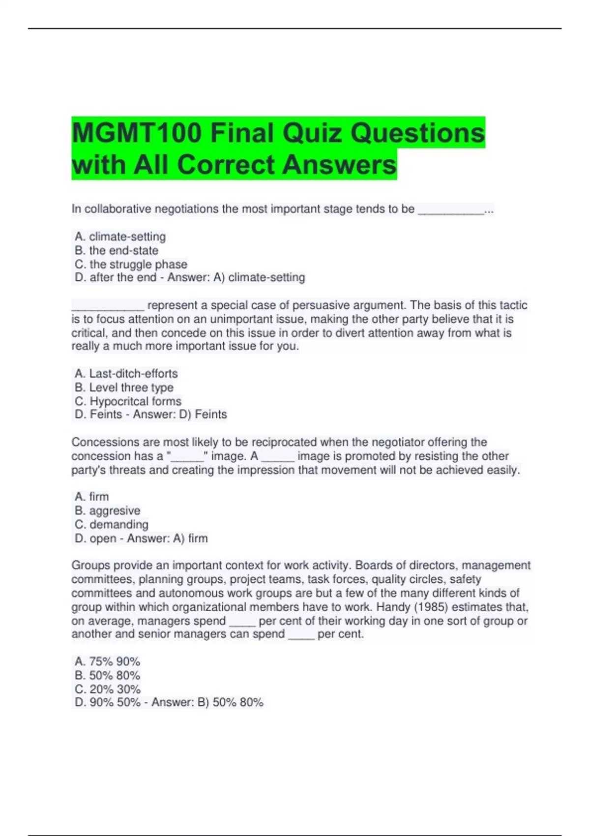 MGMT100 EXAM QUESTIONS WITH 100% CORRECT ANSWERS 2 Exam (elaborations) MGMT100 Final Quiz Questions with All Correct Answers 3 Exam (elaborations) MGMT100 EXAM QUESTIONS AND ANSWERS ALL CORRECT UPDATE 4 Exam (elaborations) MGMT100 TEST QUESTIONS WITH ALL CORRECT ANSWERS 5 Exam (elaborations) MGMT100 Exam 1 Review Questions with All Co