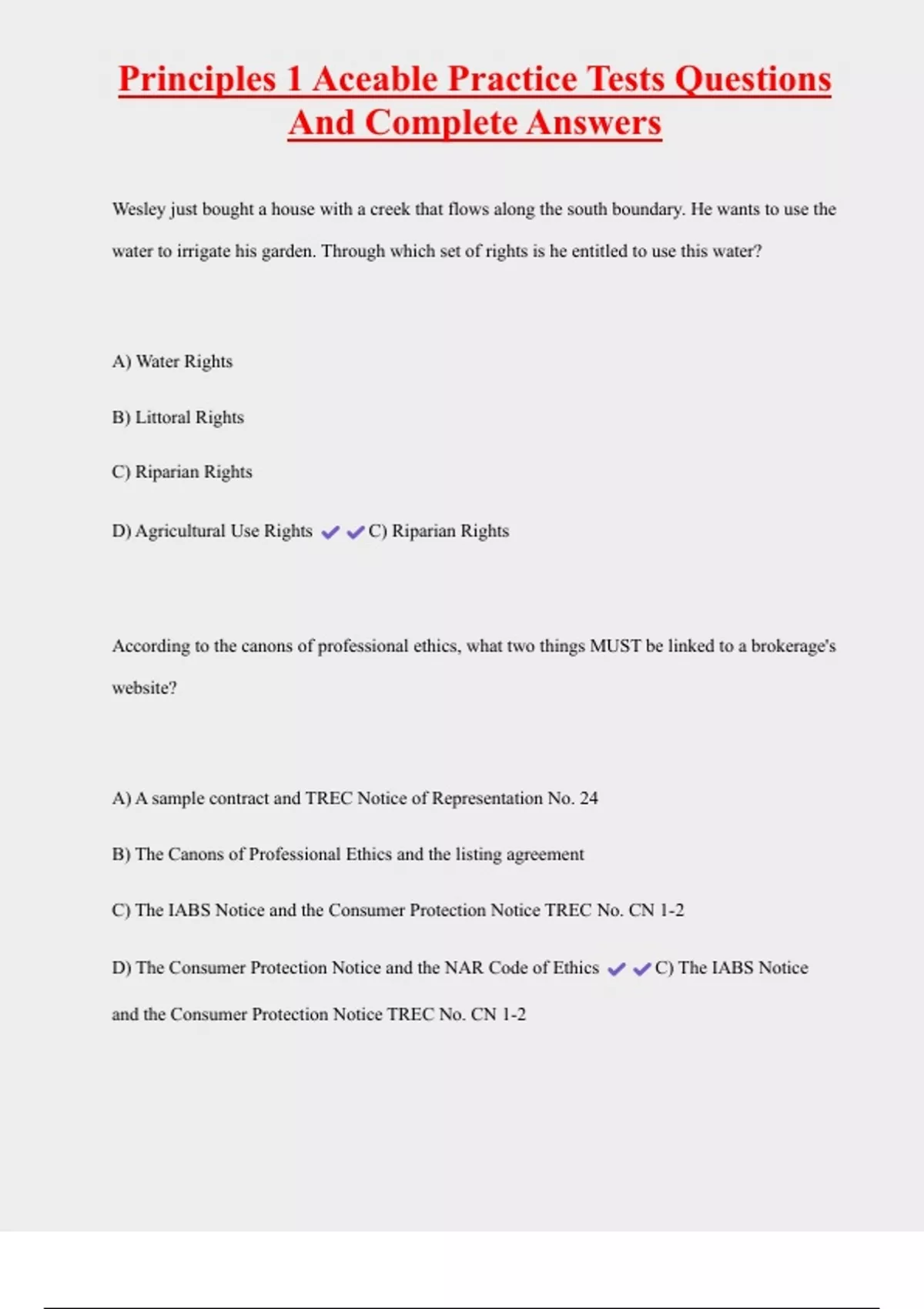 CA Real Estate Principles Test Aceable Agent Questions And Complete Answers 2 Exam (elaborations) Principles 1 Aceable Practice Tests Questions And Complete Answers 3 Exam (elaborations) AceableAgent state exam study set Questions And Complete Answers 4 Exam (elaborations) AceableAgent Real Estate Principals 2 Test Questions And Complete Answers