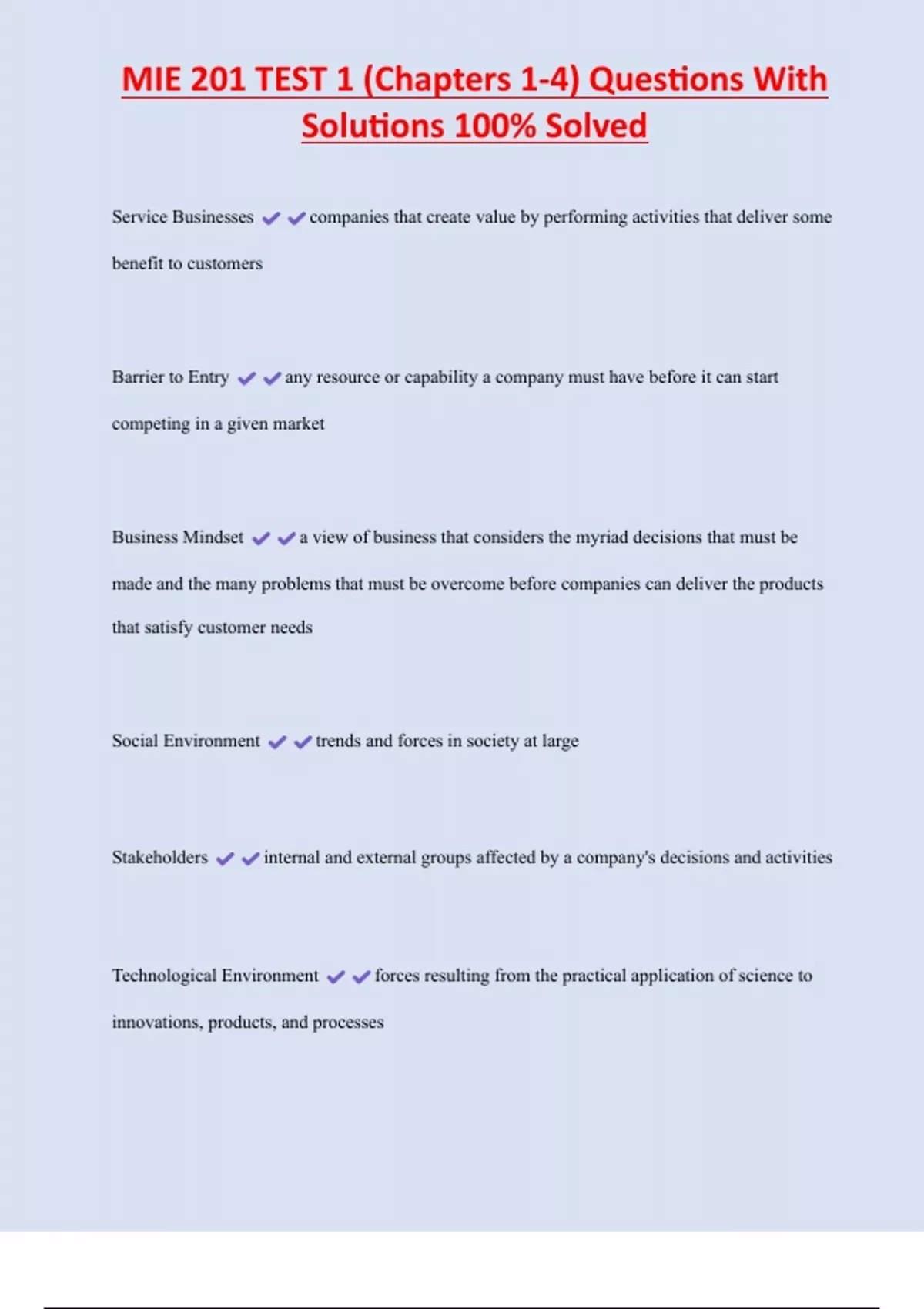 MIE 201 EXAM PACK WITH COMPLETE SOLUTIONS