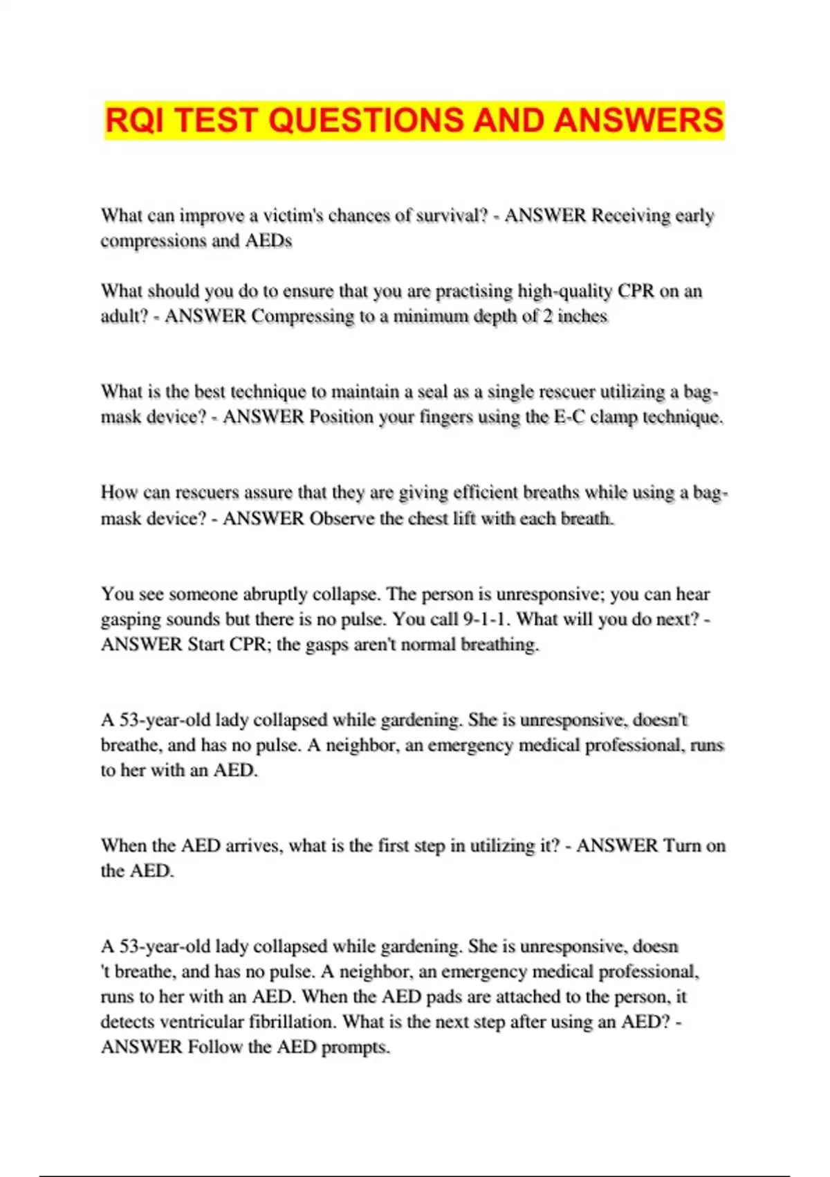 CPR/RQI EXAM QUESTIONS AND 100% VERIFIED ANSWERS