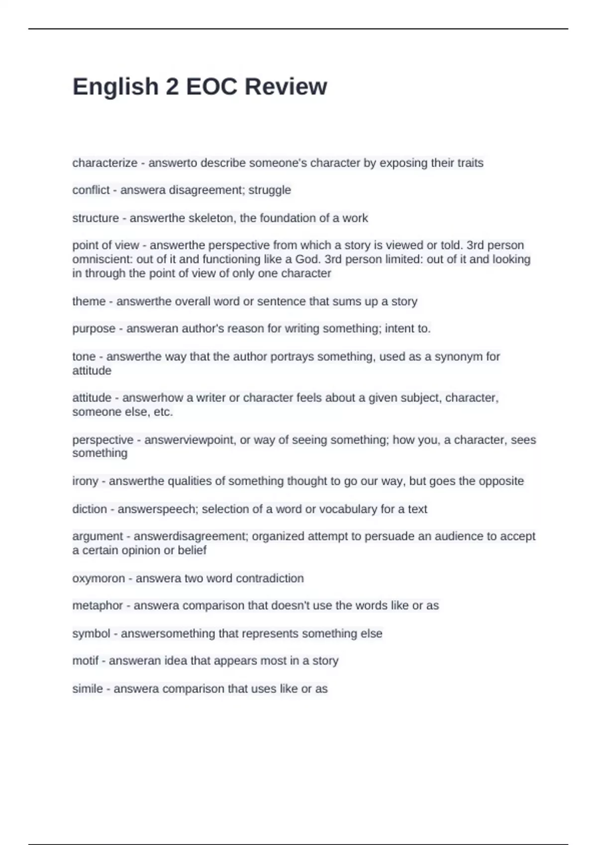 English 2 EOC Review Questions and Answers 100% Solved