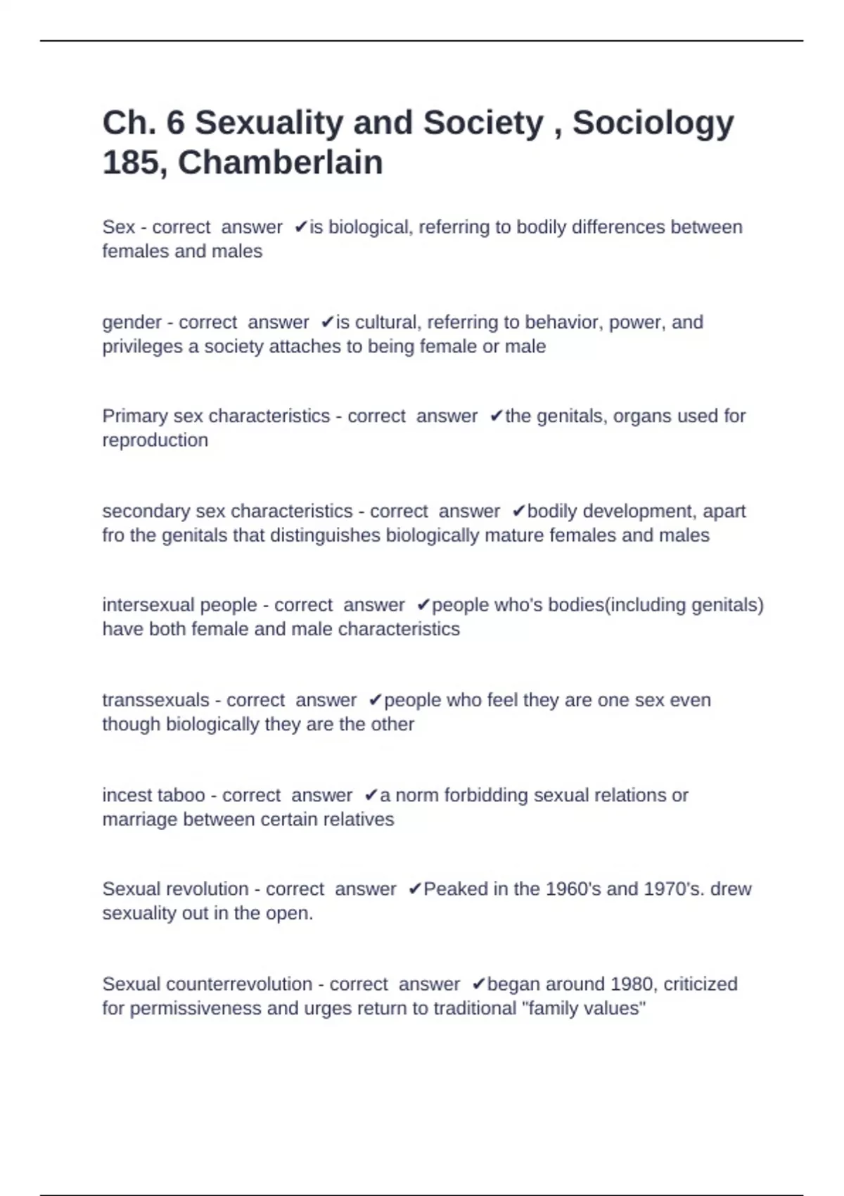 What is Sociology Week 2 Quiz Chamberlain College Of Nursing - Question and answers rated A+ 2024/2025 Exam (elaborations) Week 6 SOC 185 quiz Chamberlain College Of Nursing - Questions with complete solution 2024/2025 Exam (elaborations) Week 6 quiz Chamberlain College Of Nursing - Questions with complete solution 2024/2025 Exam (elaboration