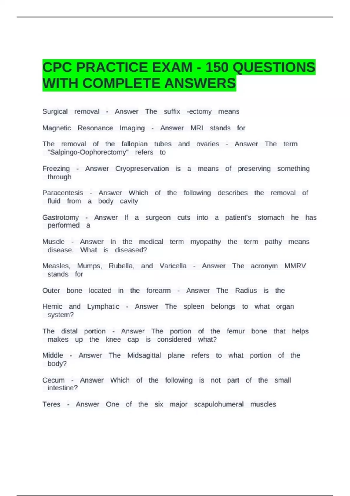PACKAGE DEAL FOR PCAC QUESTIONS WITH CORRECT ANSWERS