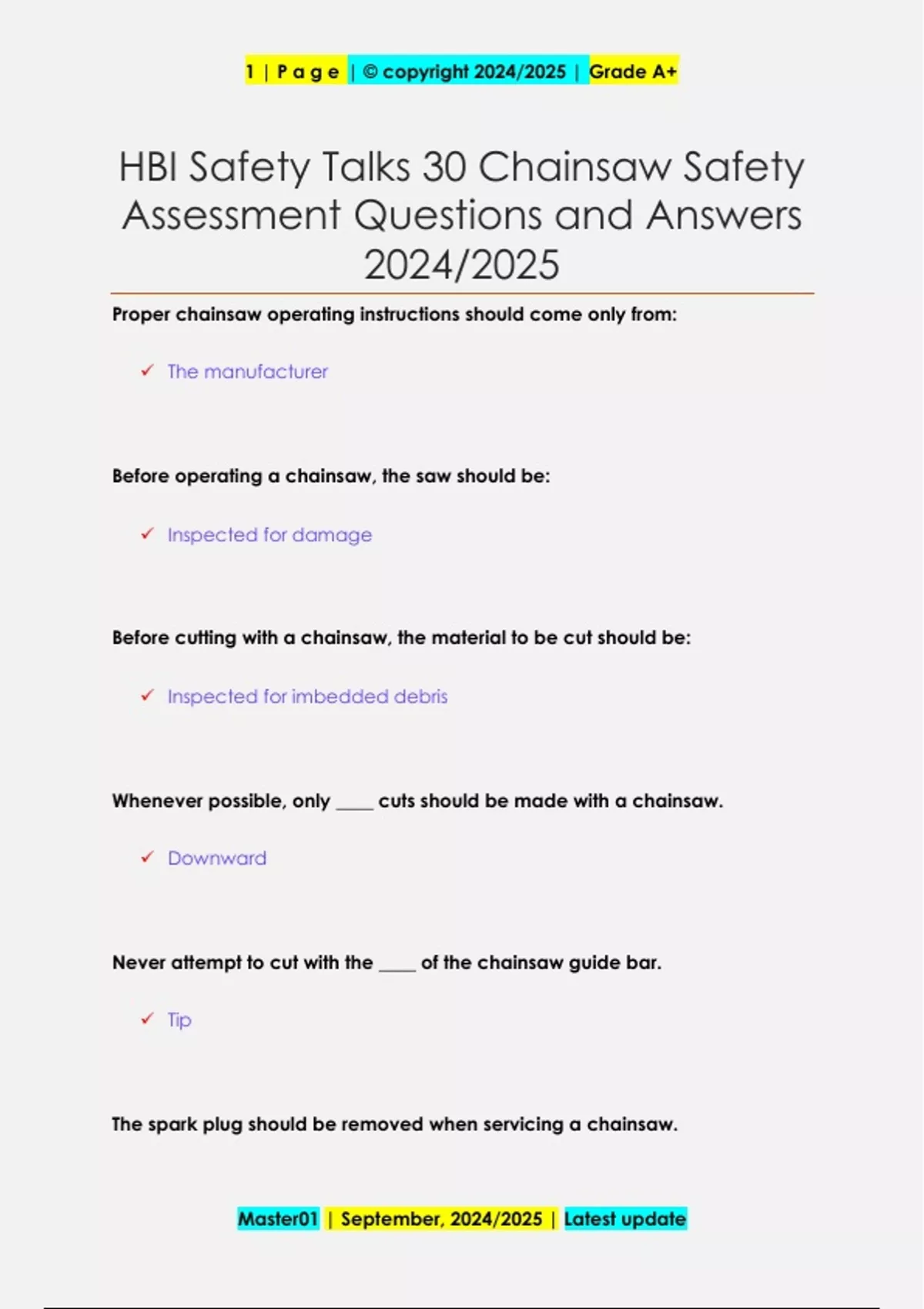 HBI Safety Assessment Questions and Answers 2024/2025