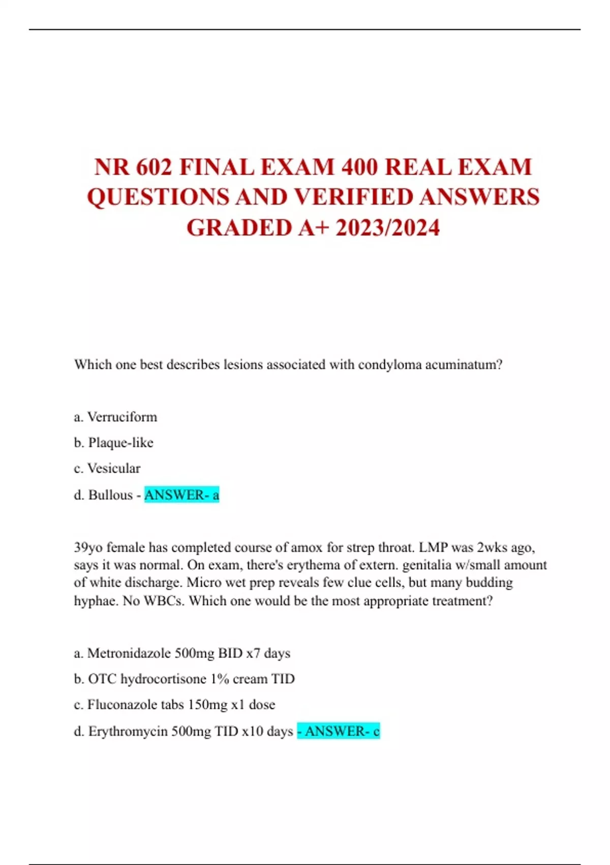 NR 602 FINAL EXAM 150 QUESTIONS AND VERIFIED ANSWERS 2024