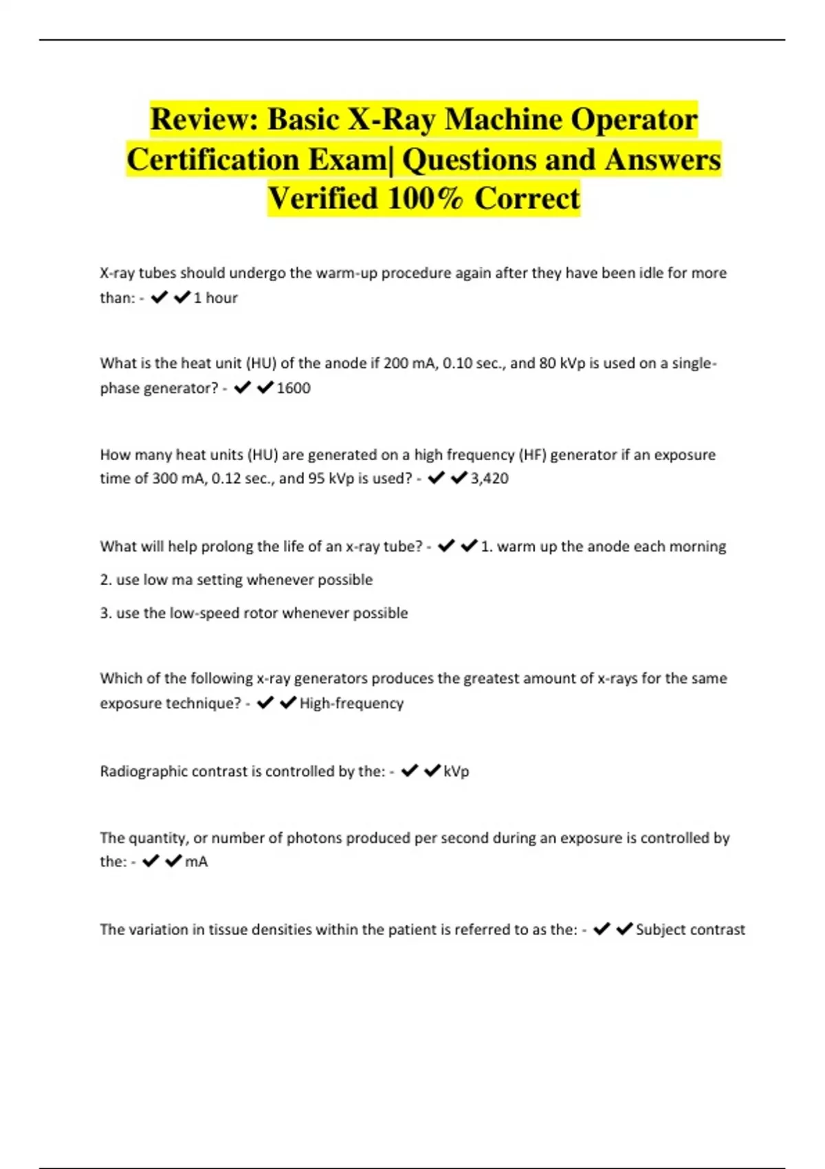 Review: Basic X-Ray Machine Operator Certification Exam| Questions and Answers Verified 100% Correct