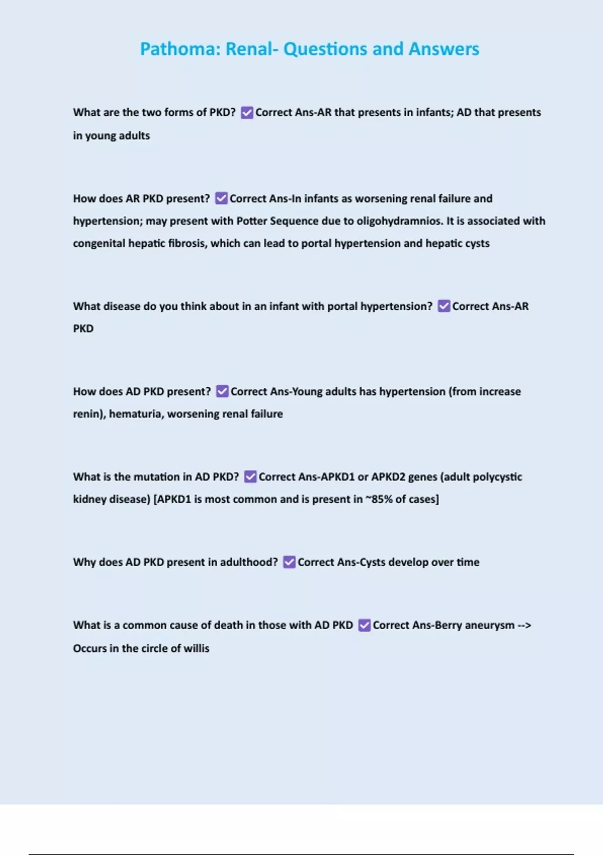 Pathoma: Renal Test Questions and Answers 100% Pass