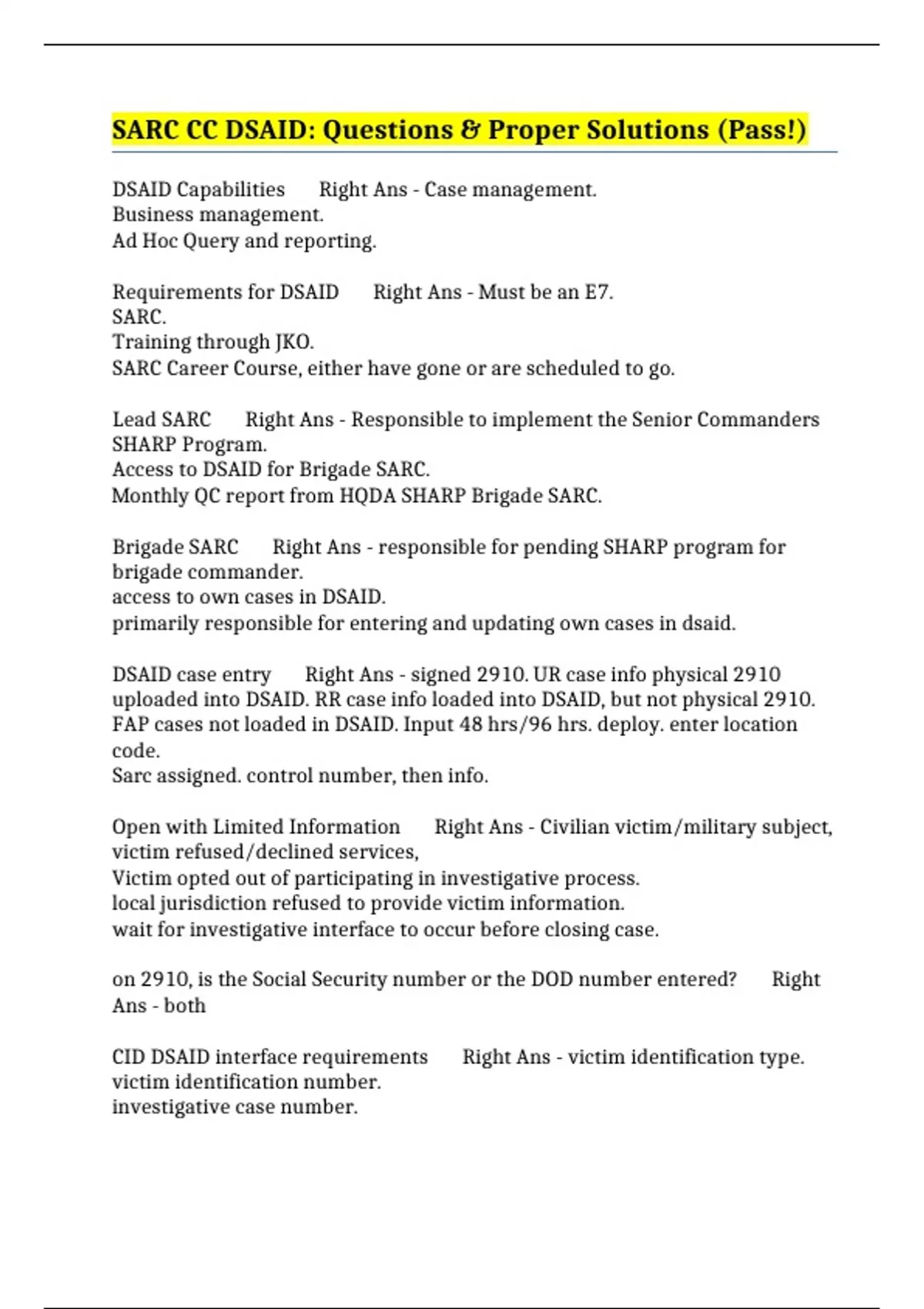 VALUE PACK::- SHARP SARC EXAMS