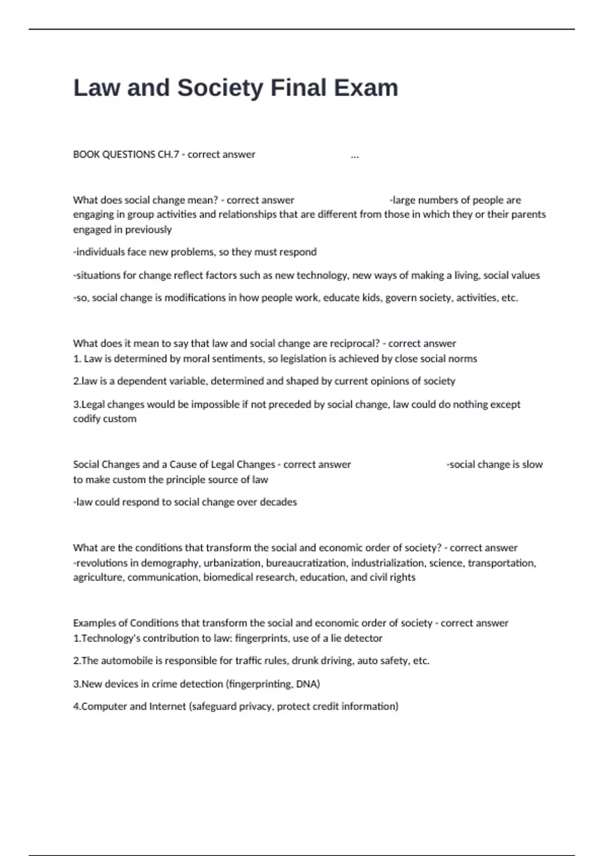 package deal of LAW AND SOCIETY Exam Bundle With Answers.