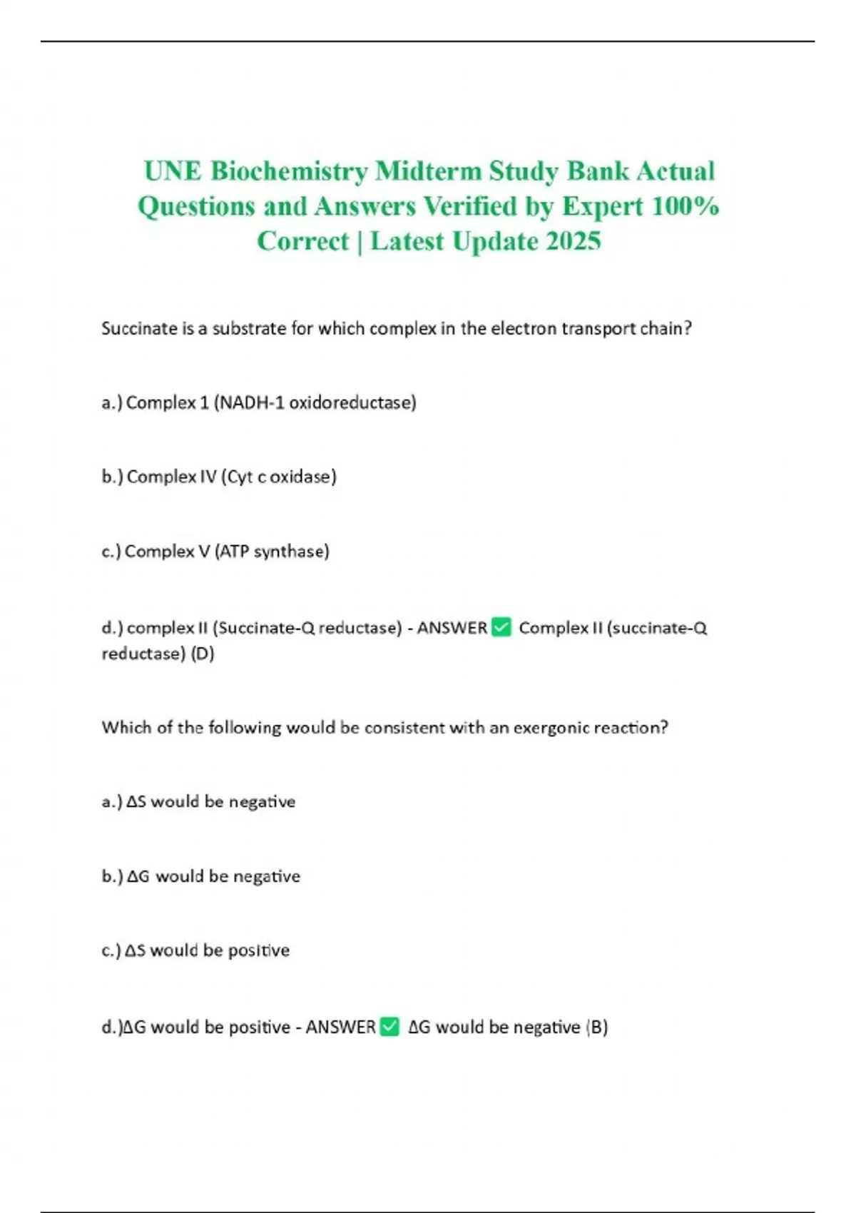 UNE Biochemistry Midterm Questions and Answers Verified by Expert 100% Correct | Latest Update 2025