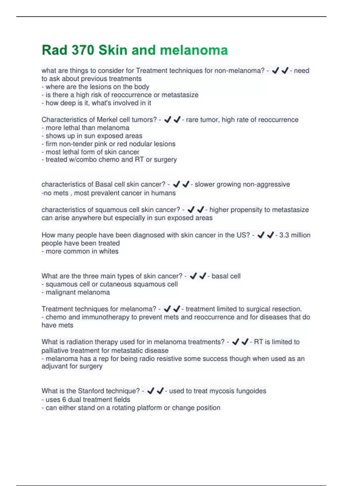 Rad 370 Skin and melanoma Questions and Answers 100% Solved correctly