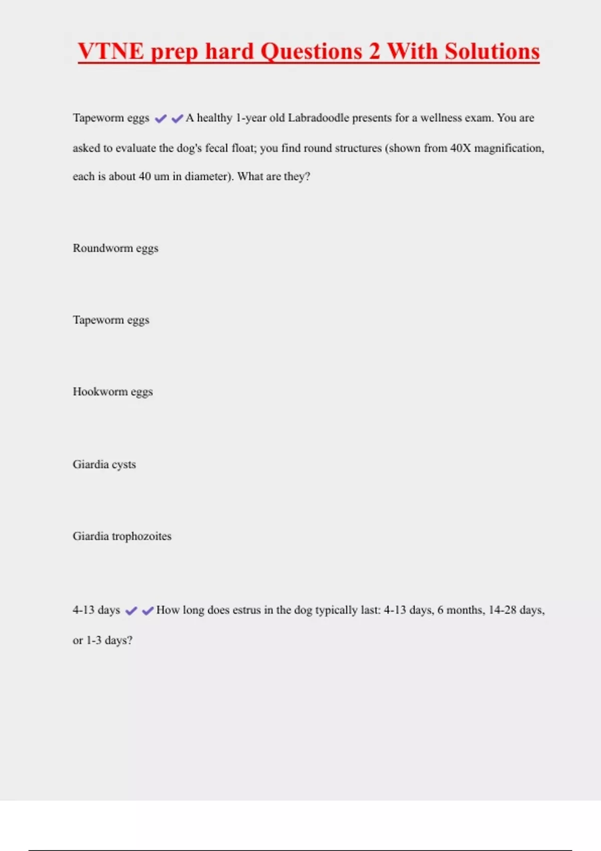 VTNE prep hard Questions 2 With Solutions 2 Exam (elaborations) VTNE prep Questions 2 With Solutions 3 Exam (elaborations) VTNE Practice Test C Questions And Answers 4 Exam (elaborations) VTNE Practice Test B Questions And Answers