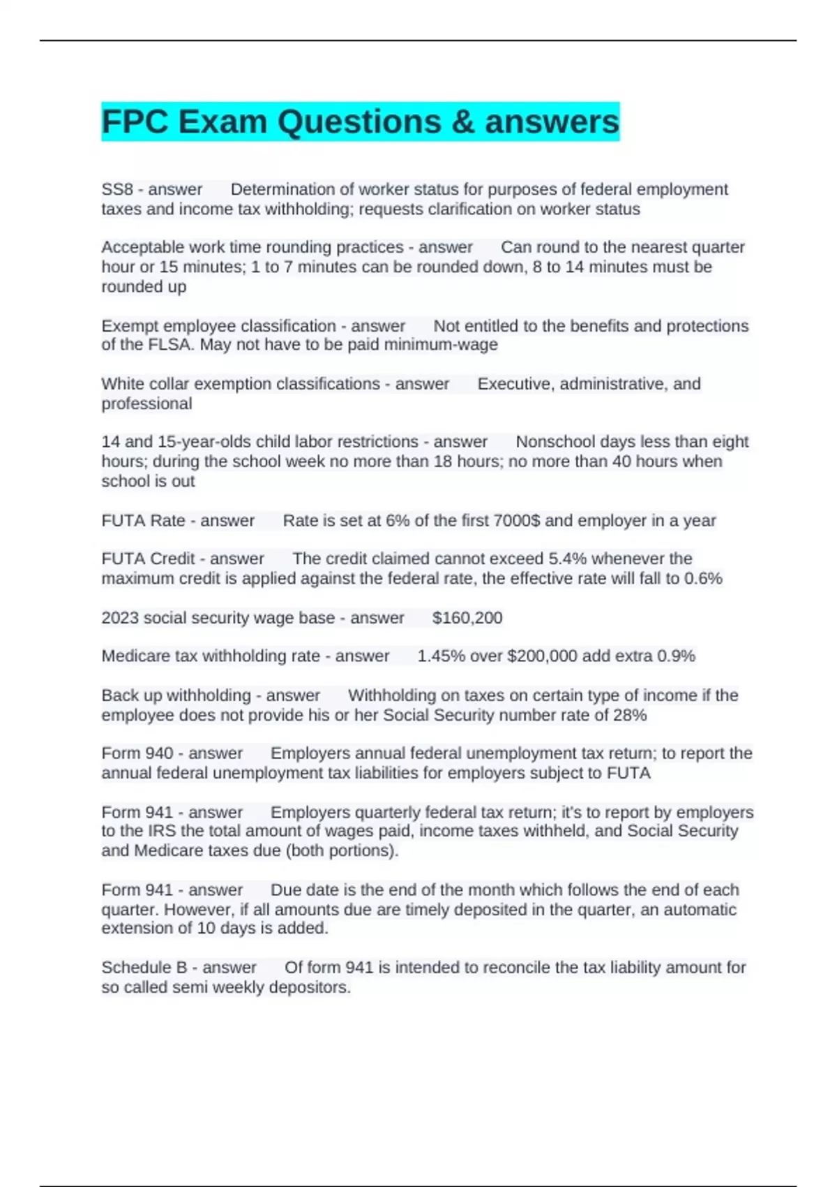 Exam (elaborations) Federal Rules of Civil Procedure Questions & Answers Exam (elaborations) Firing Party Questions & Answers Exam (elaborations) FPC' 16 Questions & Answers Exam (elaborations) FPC Chapter 4.2 Questions and Answers Exam (elaborations) FPC Chapter 4.4 Questions & Answers Exam (elaborations) FPC Payroll Benefit Basics 4.1