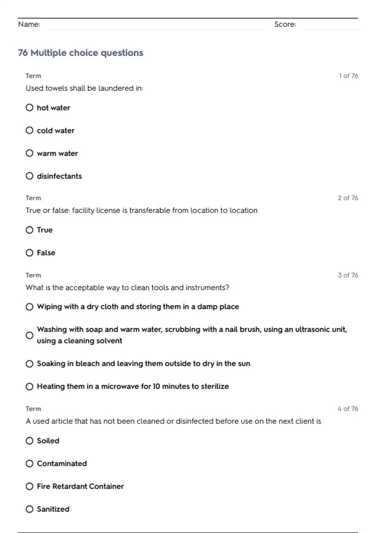 Oregon Board of Cosmetology Laws and Rules revision questions and answers