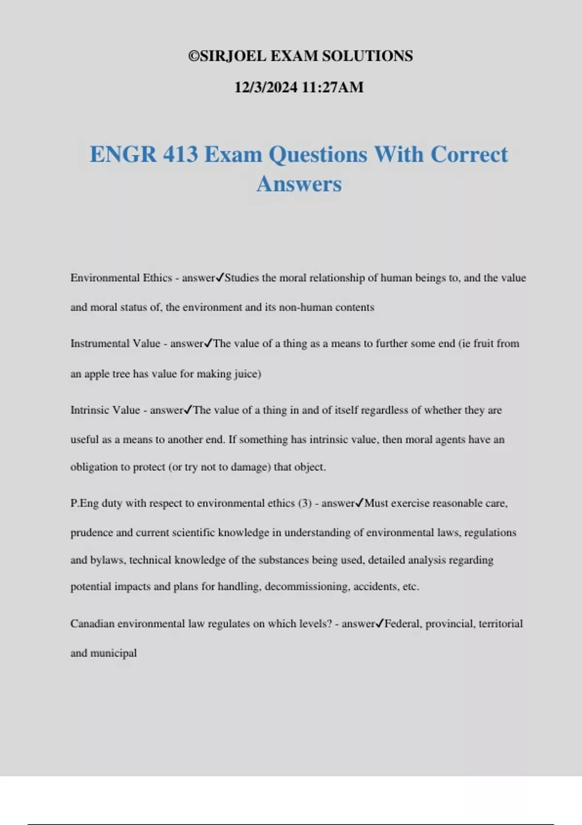 ENGR 413 EXAM PACKAGE DEAL 100% VERIFIED.