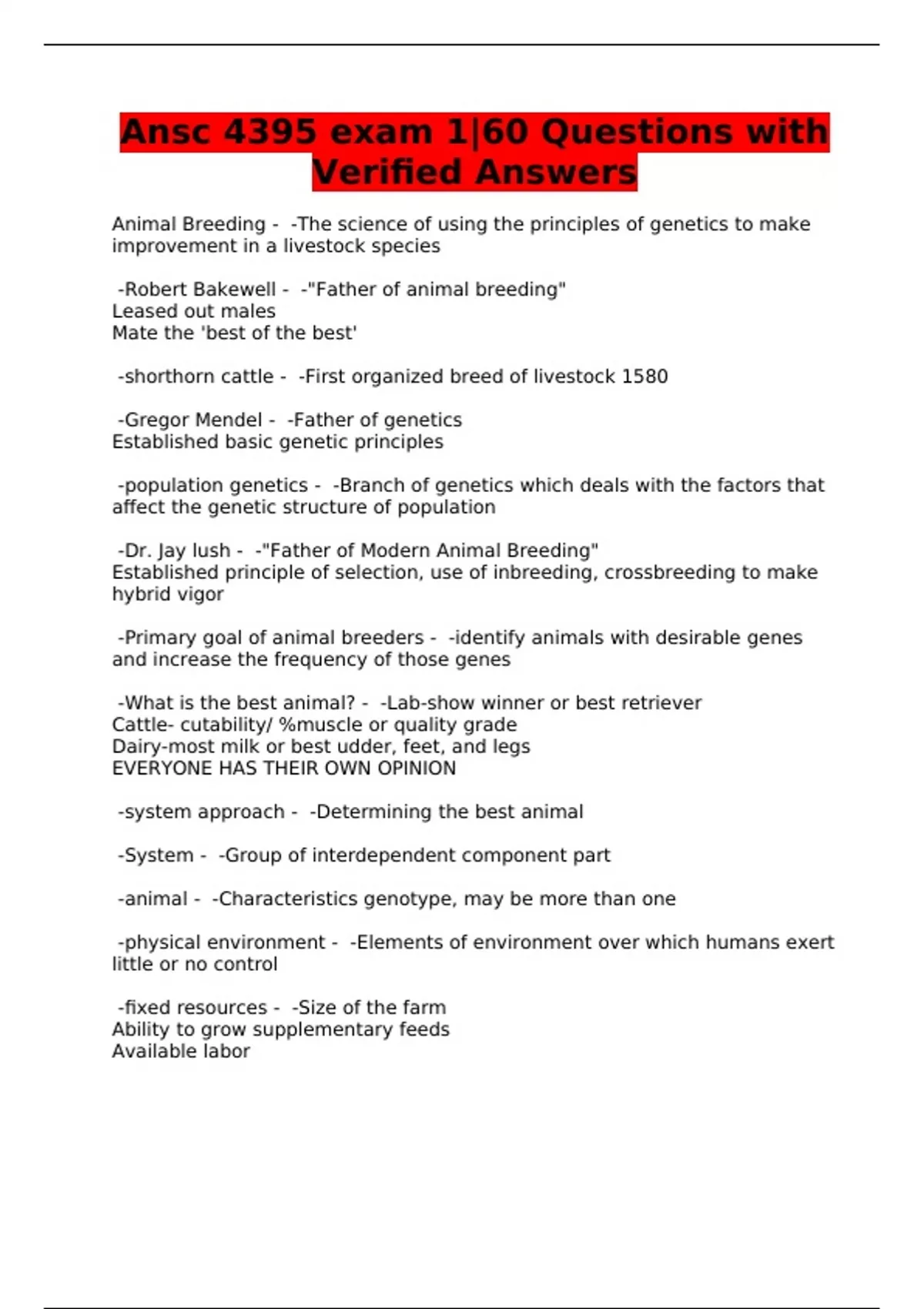 Ansc 4395 exam 1|60 Questions with Verified Answers