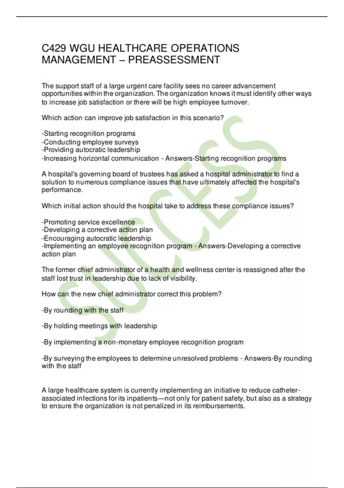Exam (elaborations) C429 WGU HEALTHCARE OPERATIONS MANAGEMENT – PREASSESSMENT- 2 Exam (elaborations) C429 WGU HEALTHCARE OPERATIONS MANAGEMENT - 3 Exam (elaborations) C429 WGU HEALTHCARE OPERATIONS MANAGEMENT 4 Exam (elaborations) C429 WGU HEALTHCARE OPERATIONS MANAGEMENT KEY CONCEPTS 5 Exam (elaborations) C429 WGU OPERATIONS MANAGEMENT QUESTIO