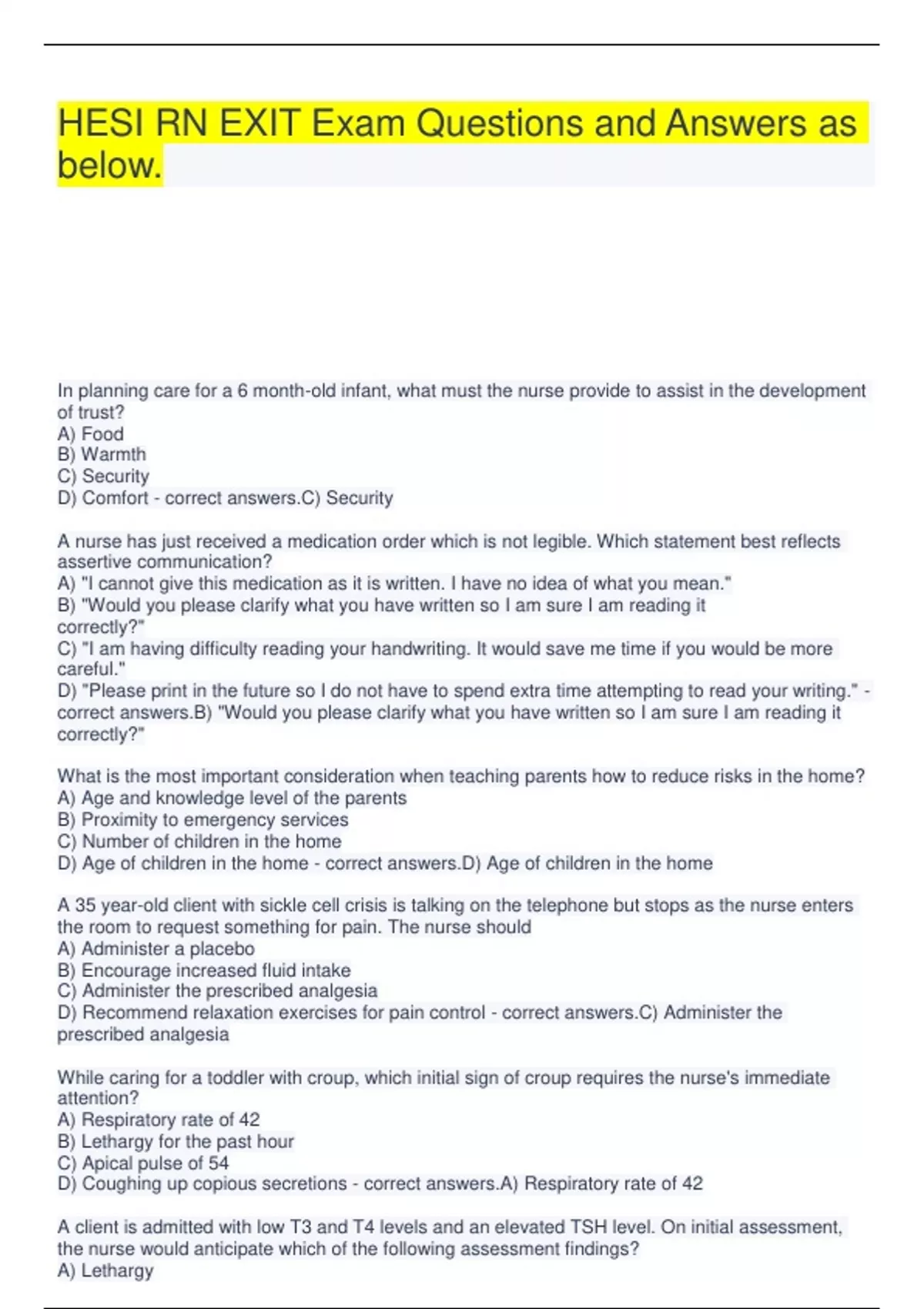 Maternity Practice Exam, Pediatrics HESI PN Review, Hesi Peds, PN HESI, Peds and Maternity HESI With Correct answers