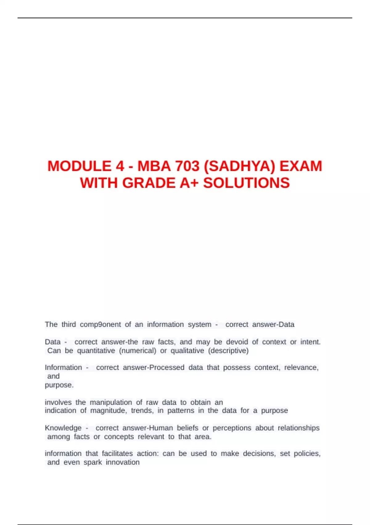 MODULE 1 - MBA 703 (SADHYA) EXAMS BUNDLED DEAL
