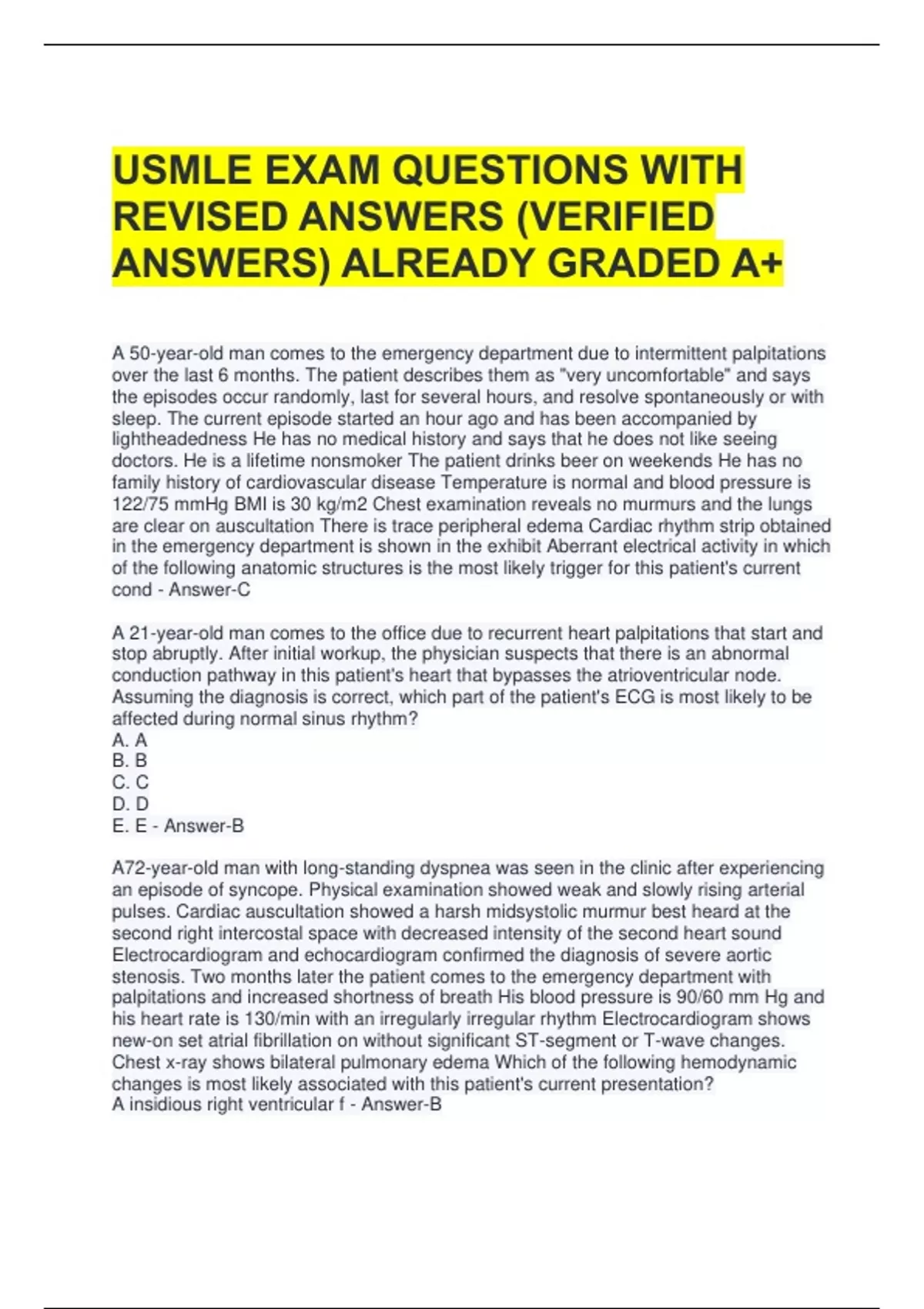 BUNDLE FOR USMLE EXAM QUESTIONS WITH REVISED ANSWERS (VERIFIED ANSWERS) ALREADY GRADED A+