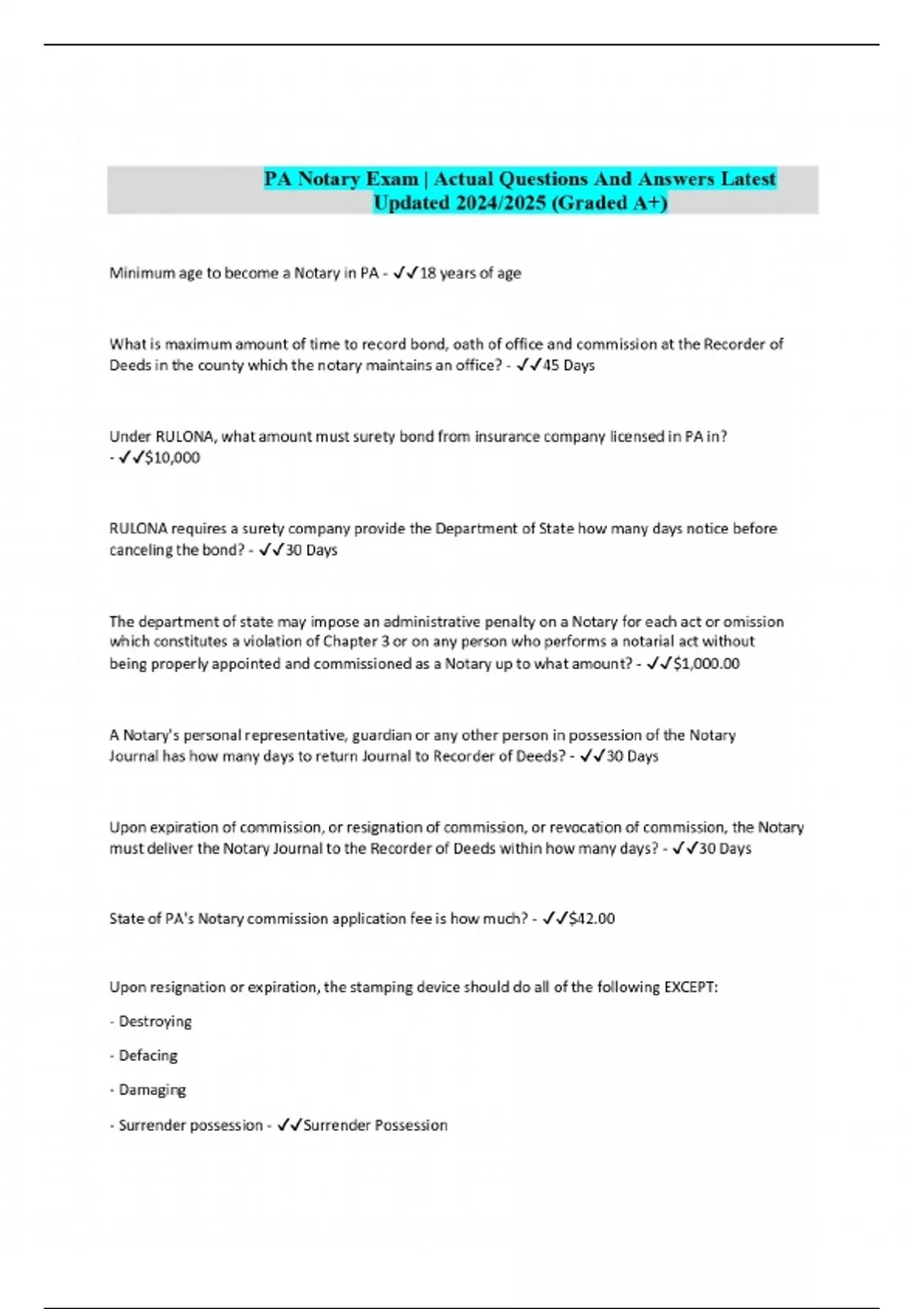 Package deal:: PA Notary Exams Compilation