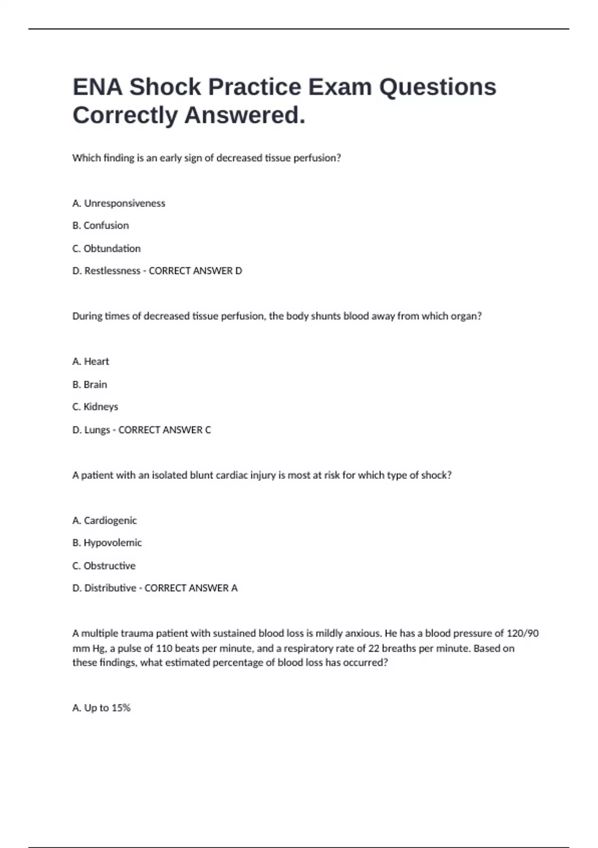 Exam (elaborations) ENA Musculoskeletal and Neurovascular Trauma Advanced Study Guide Exam. Exam (elaborations) ENA Child and Elder Exam Questions Correctly Answered. Exam (elaborations) ENA Abdominal and GI Trauma Final Study Exam Questions Correctly Answered. Exam (elaborations) ENA Med Dosage Advanced Study Test with Latest Answers. Exa
