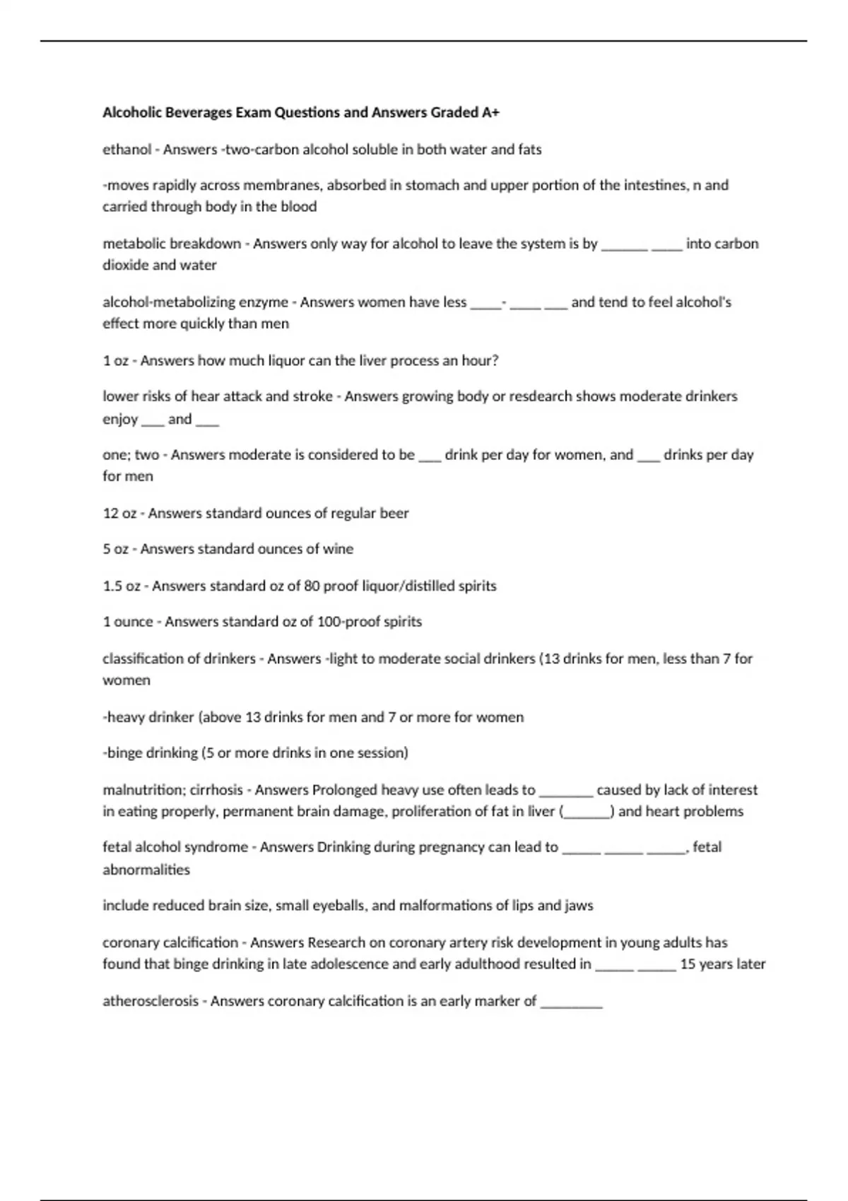 Alcoholic Beverages Exam Questions and Answers Graded A+
