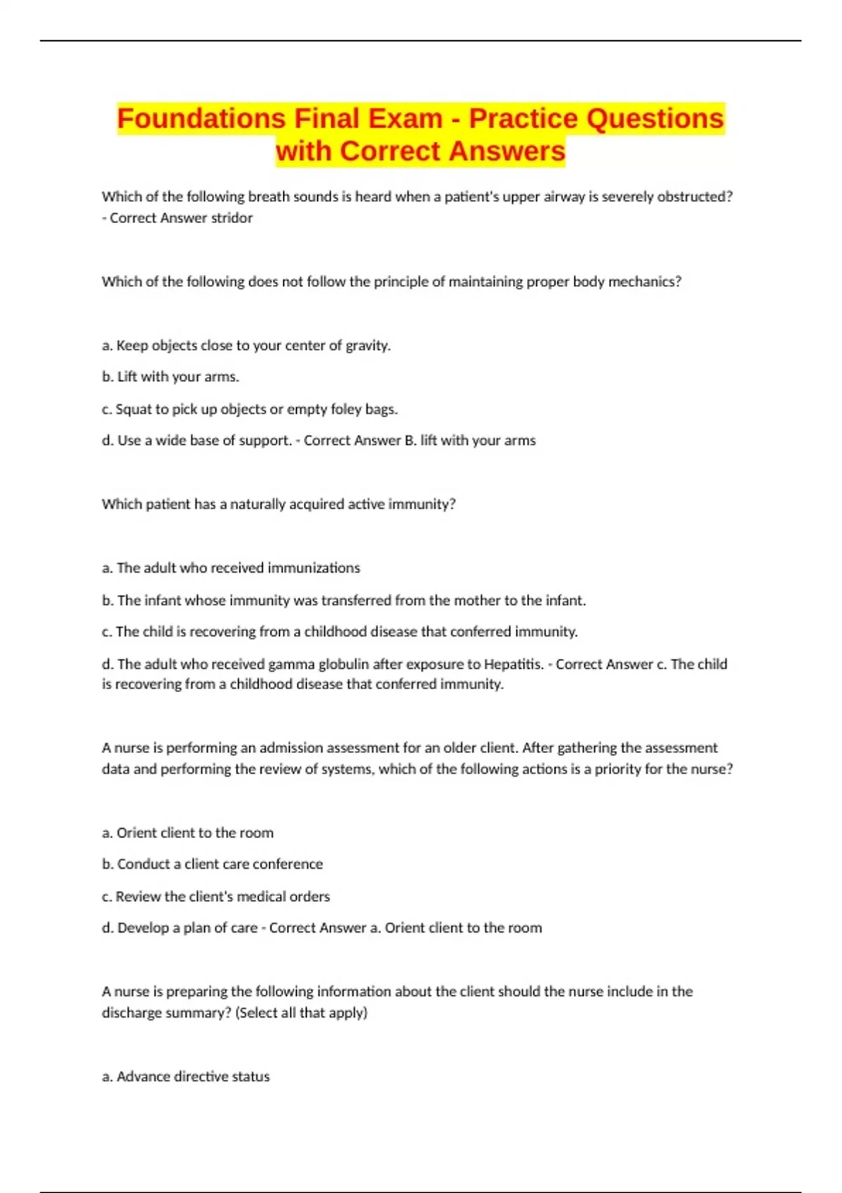 Foundations Final Exam Study Guide Questions with Correct Answers