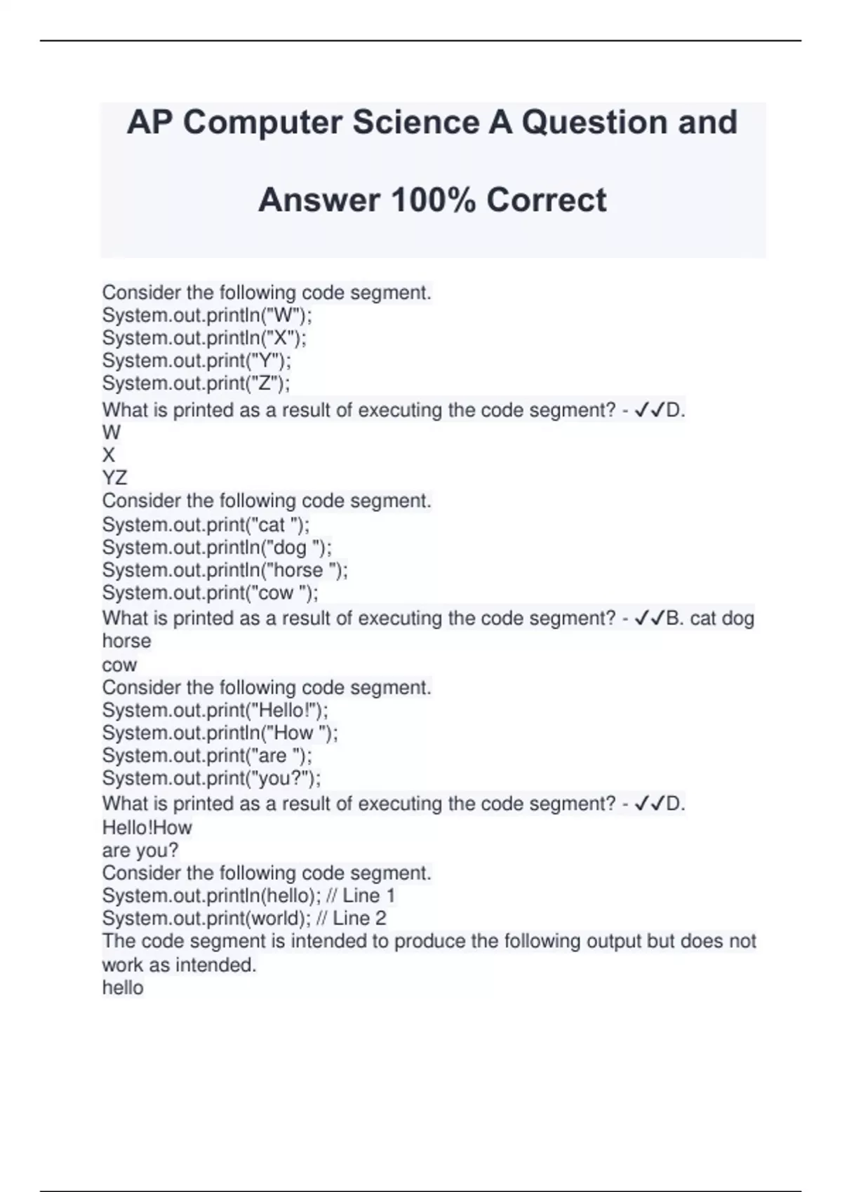 AP Computer Science Sample MC Question and Answer 100% Correct