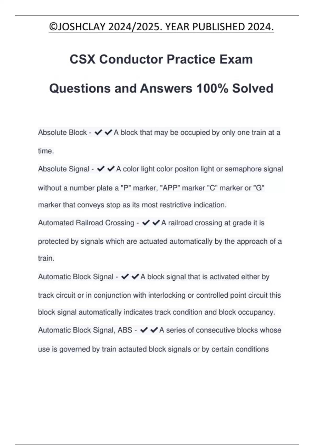 CSX Freight Conductor Final Exam Questions and Answers 100% Solved