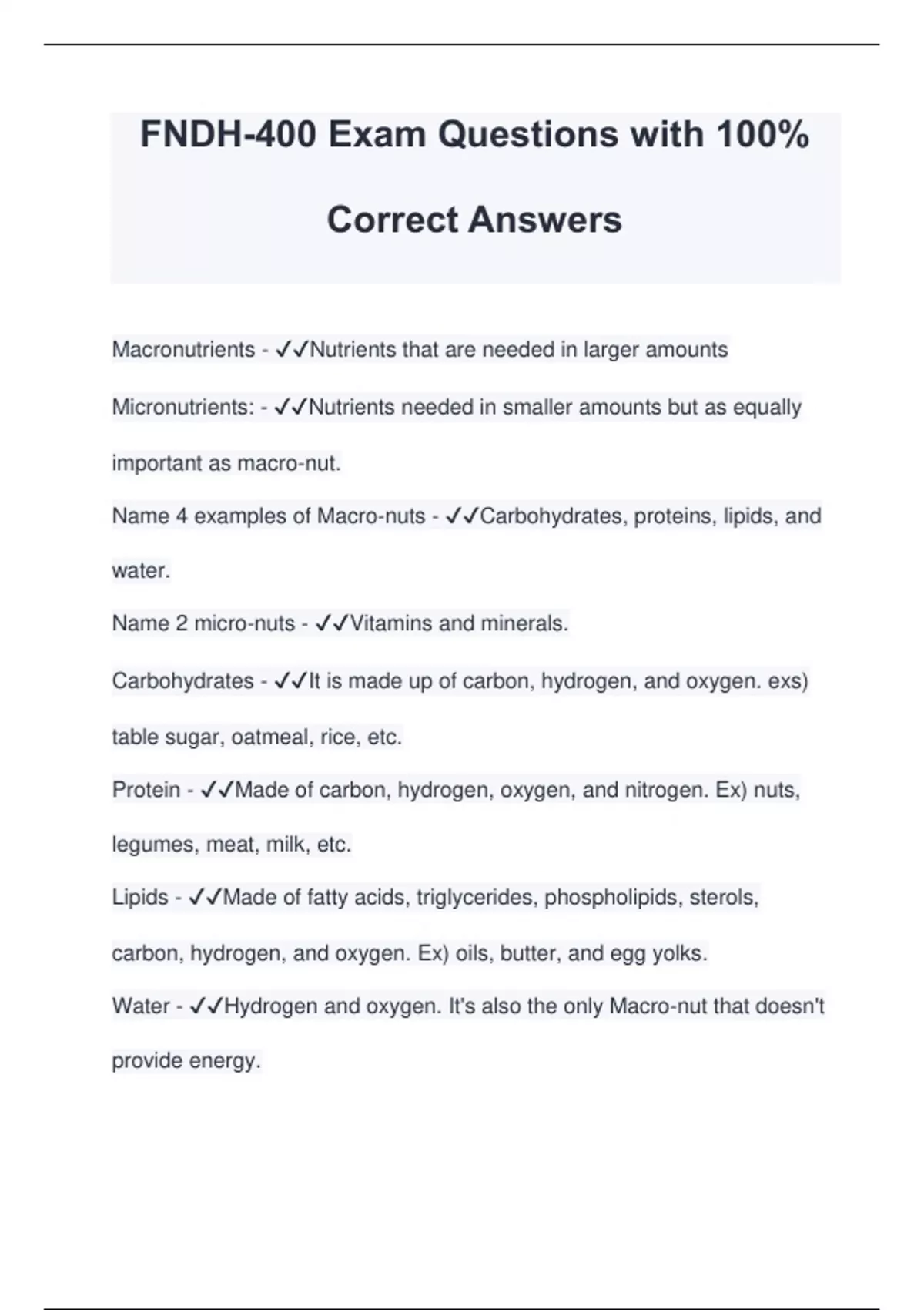 FNDH 132 Exam 2 Questions with 100% Correct Answers