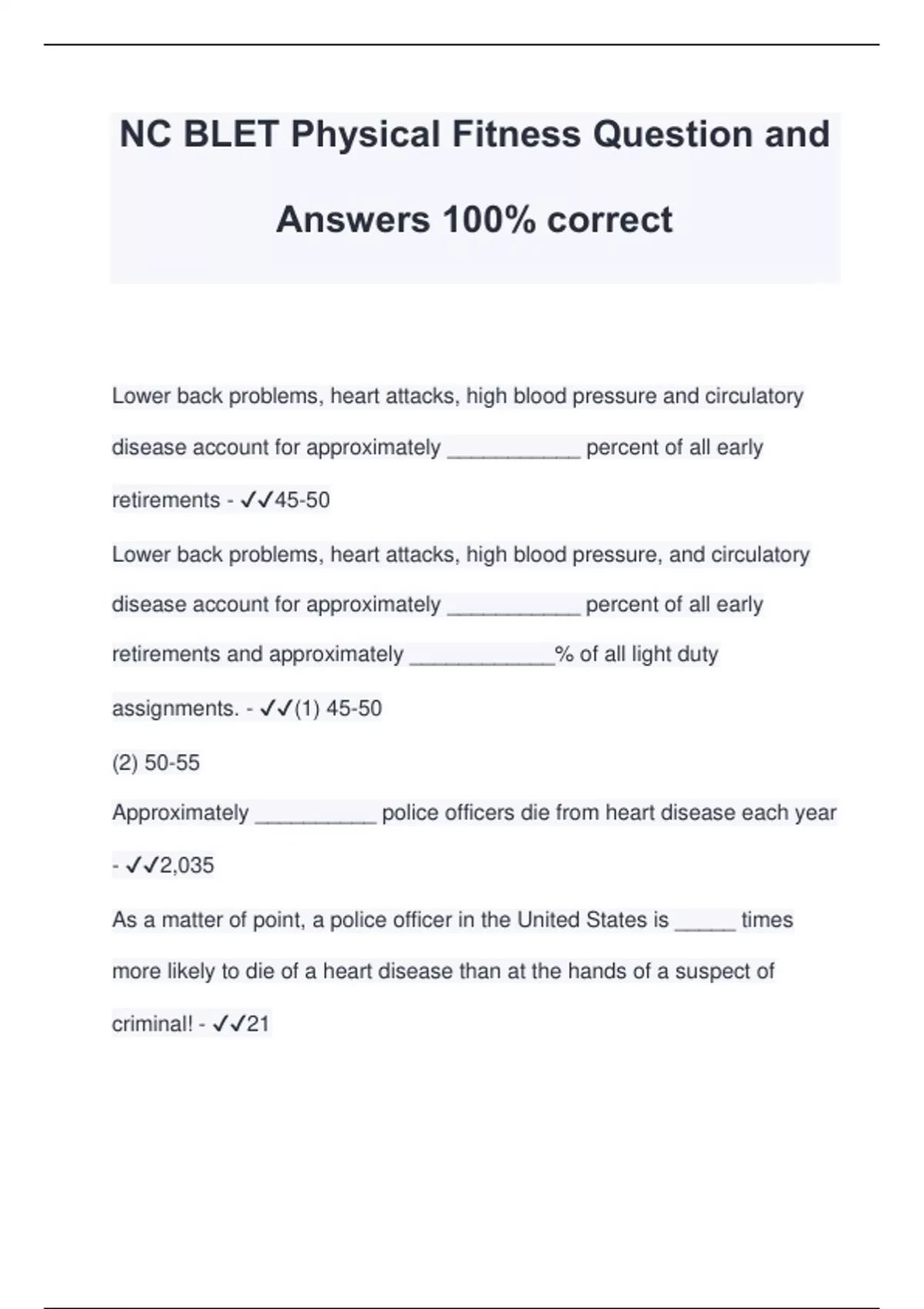 NC BLET- Physical Fitness Question and Answers 100% correct