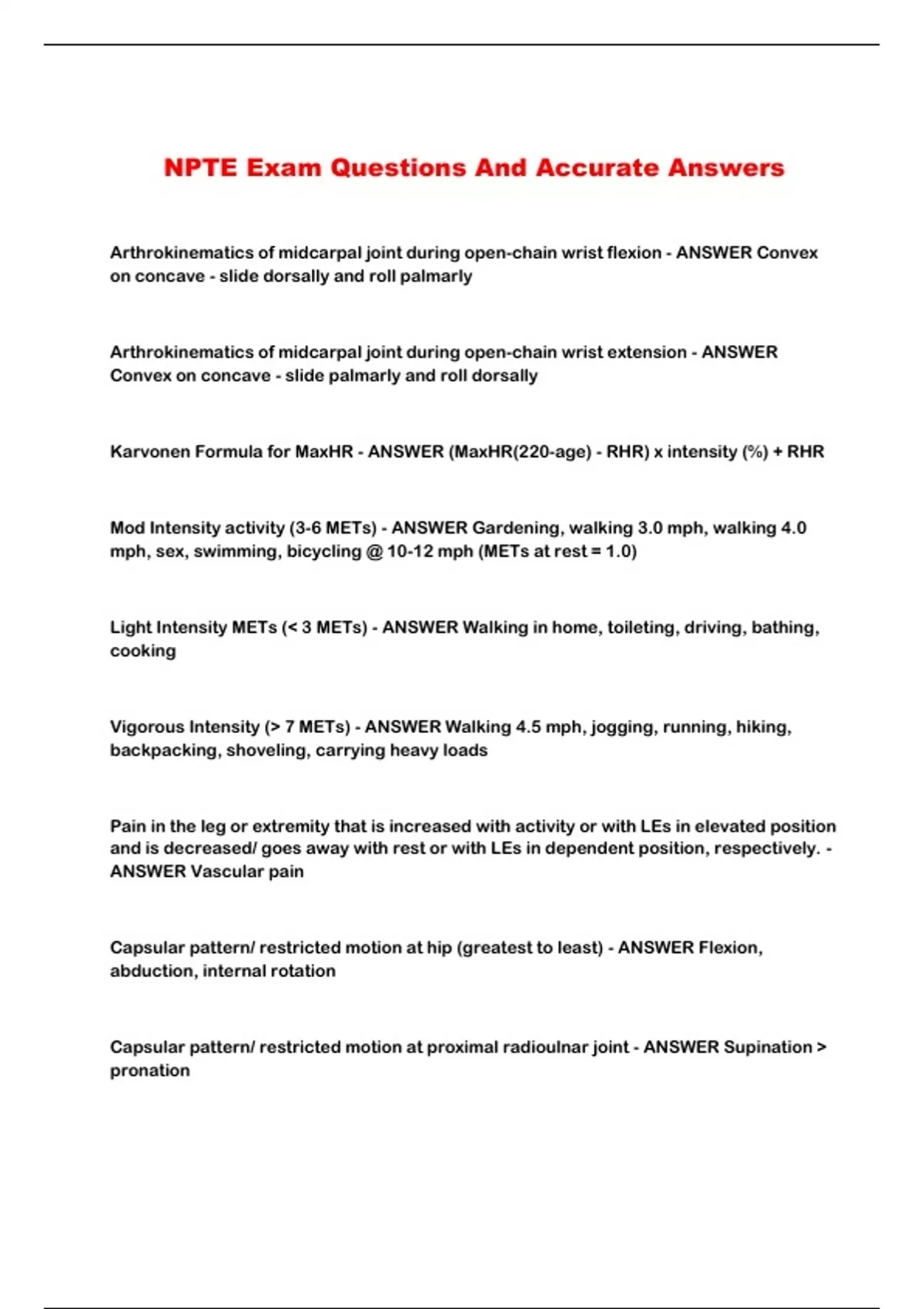 NPTE PACKAGED EXAMS WITH COMPLETE SOLUTIONS...