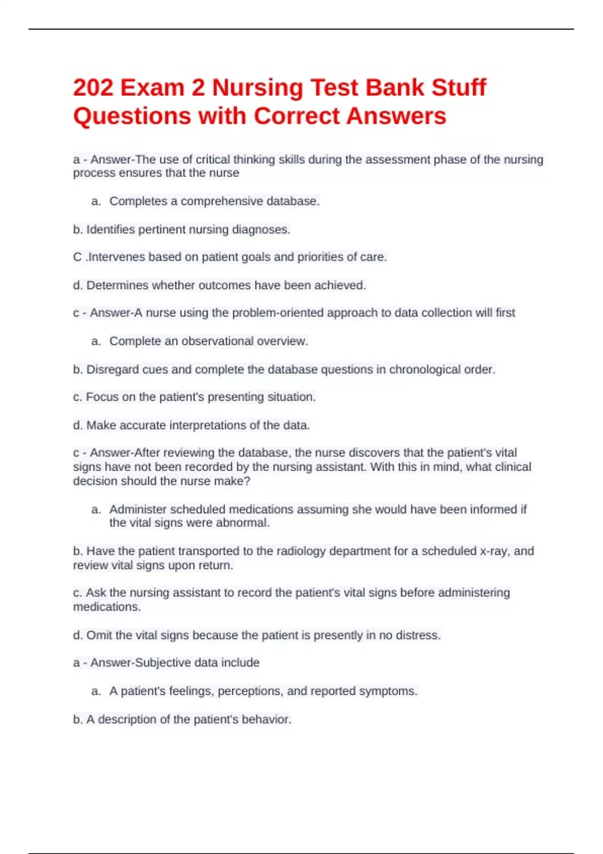 Exam (elaborations) Toddler Growth and Development NUR 202-Exam 2 Questions and Answers Exam (elaborations) QUIZ 1 - NUR 202 Questions with Answers Exam (elaborations) Nursing 202 TEST 1 Questions with Complete Answers Exam (elaborations) NURSING 202 MIDTERM EXAM QUESTIONS WITH VERIFIED ANSWERS Exam (elaborations) Nursing 202 Final Exam Qu