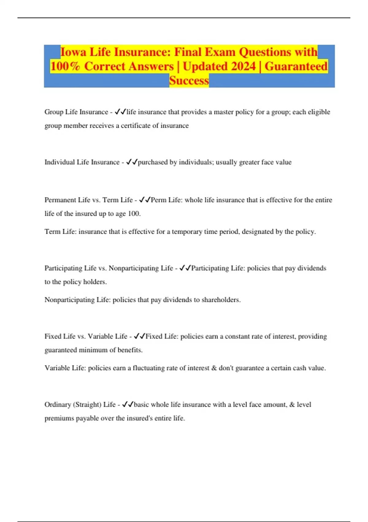 Package deal:::Iowa Life Insurance Exams Compilation